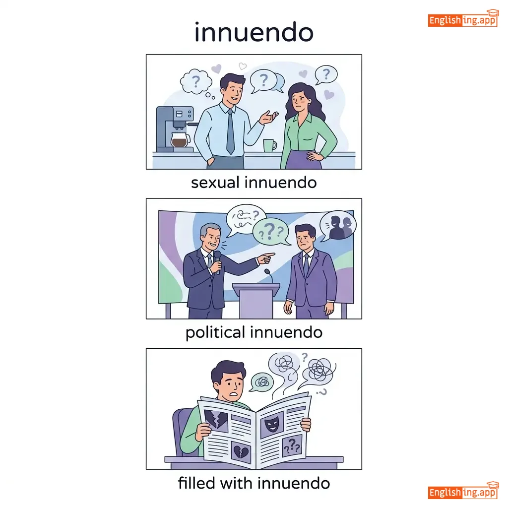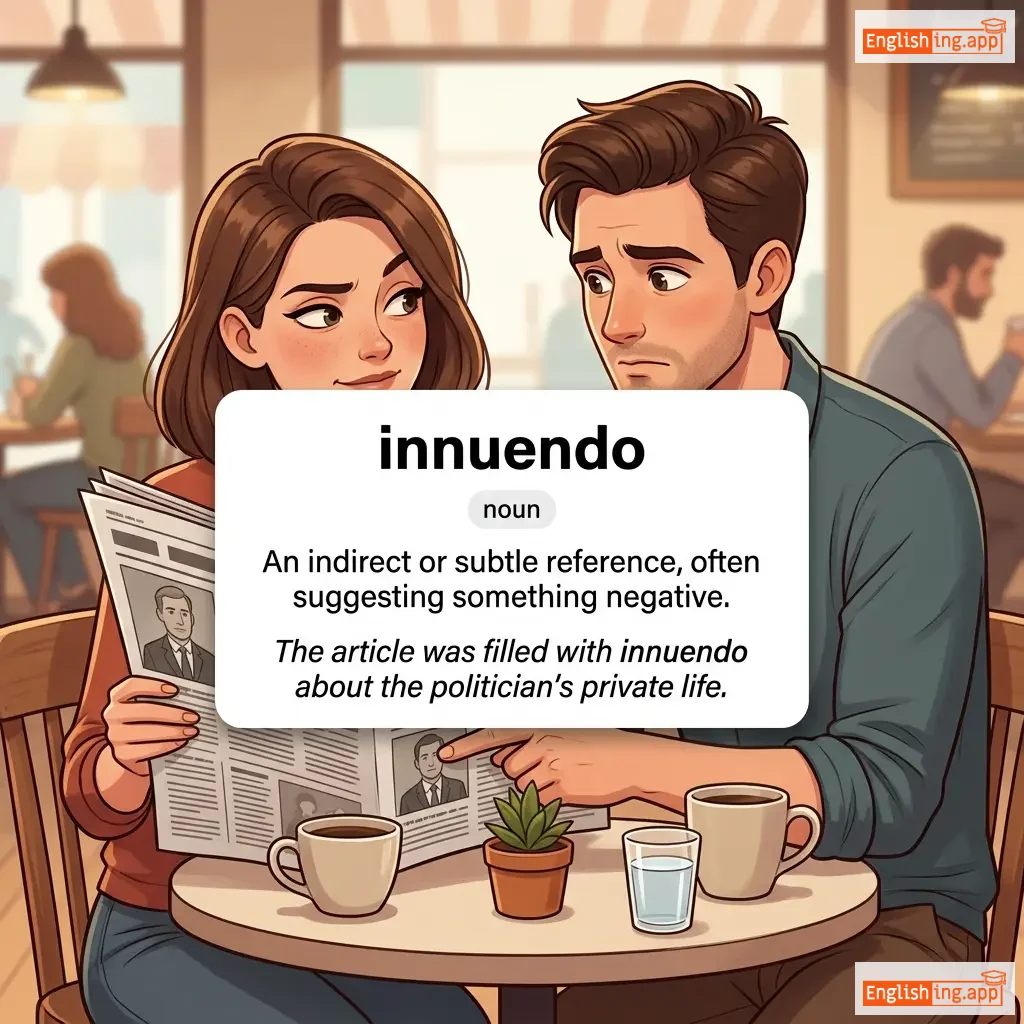 An allusive or oblique remark or hint, typically a suggestive or disparaging one.