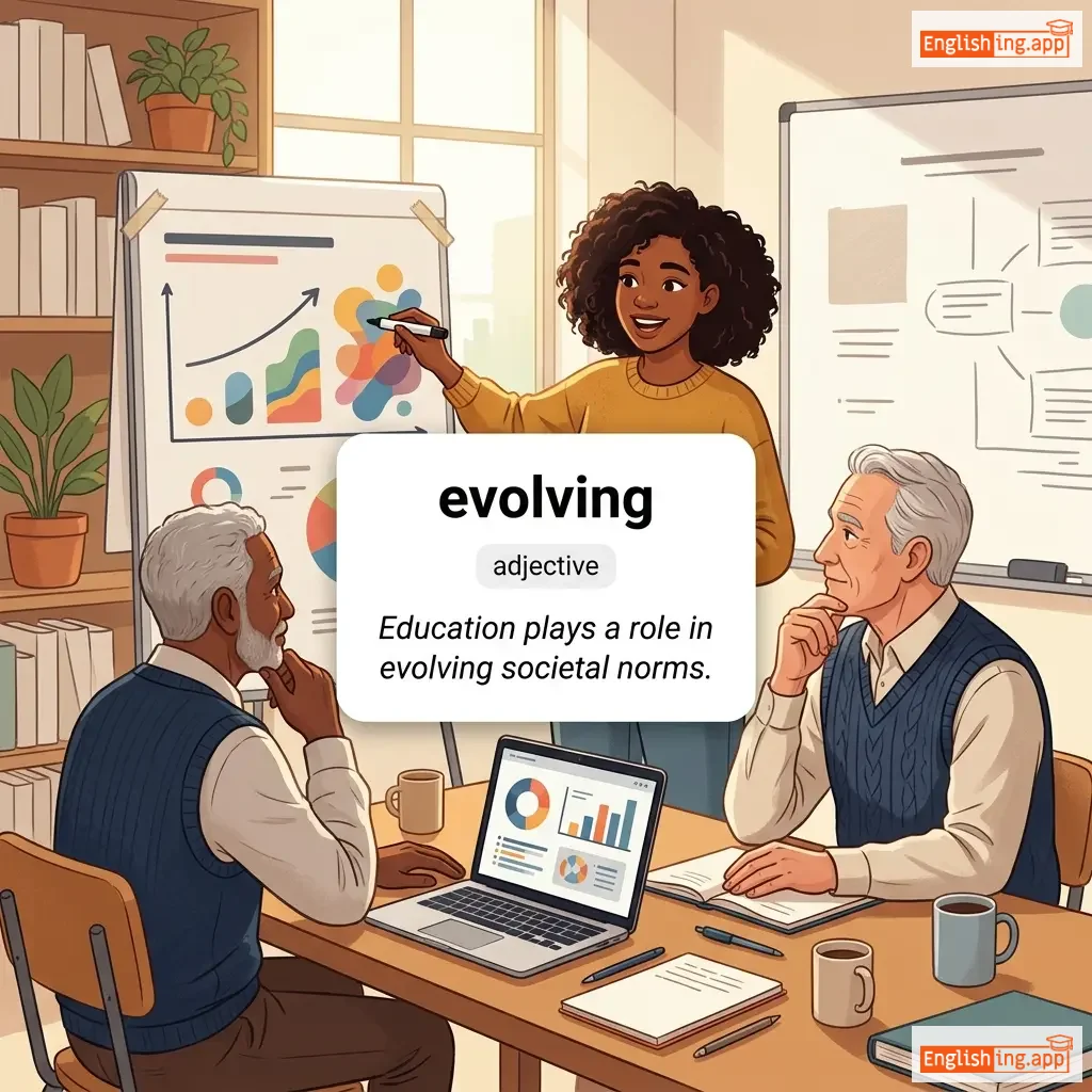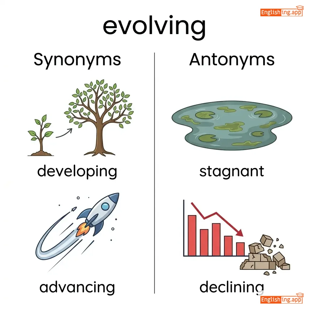 Developing gradually, especially from a simple to a more complex form; changing and developing.