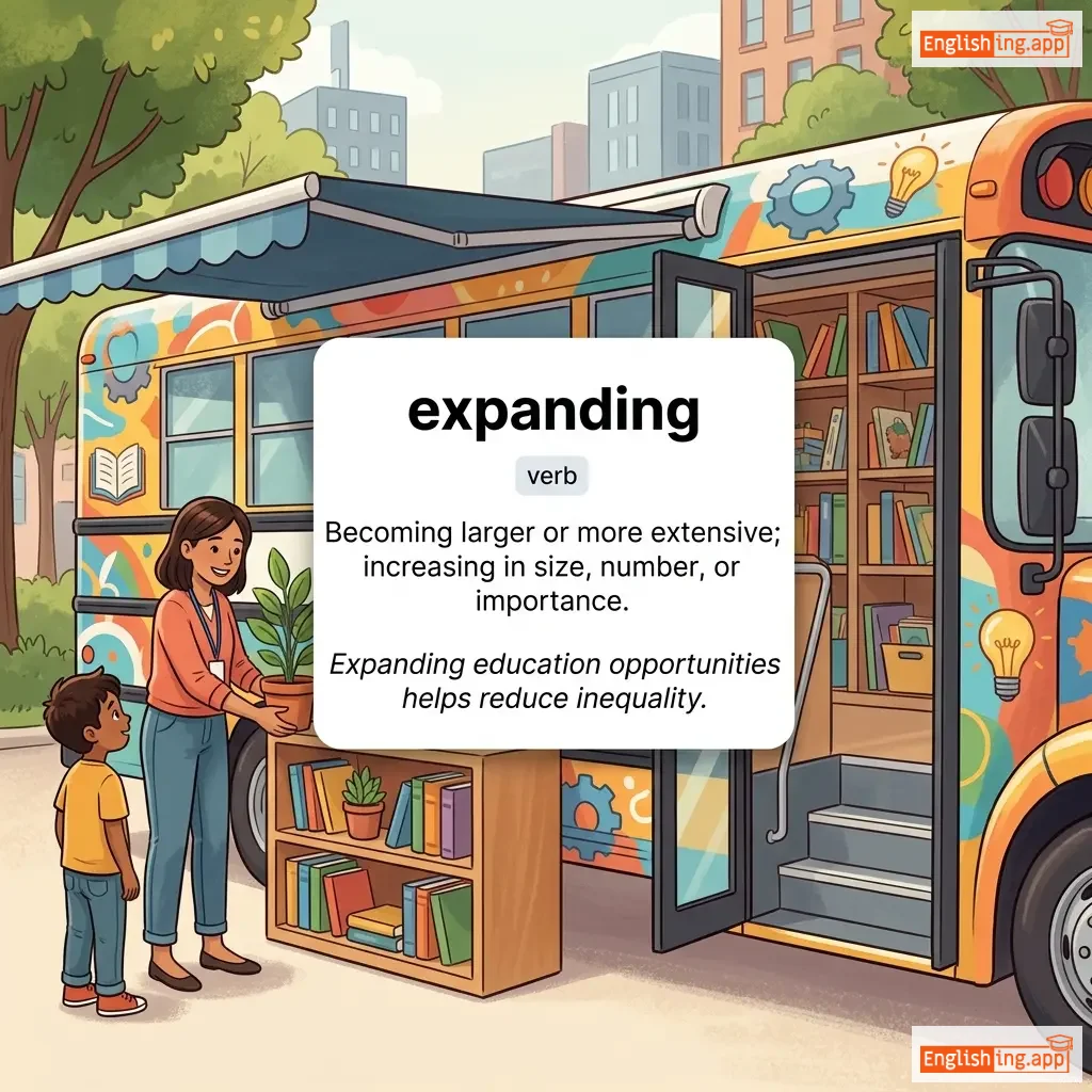 Becoming larger or more extensive; increasing in size, number, or importance.