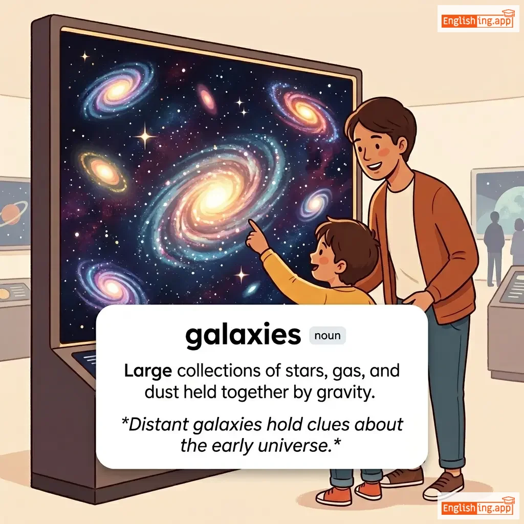 Large collections of stars, gas, and dust held together by gravity.