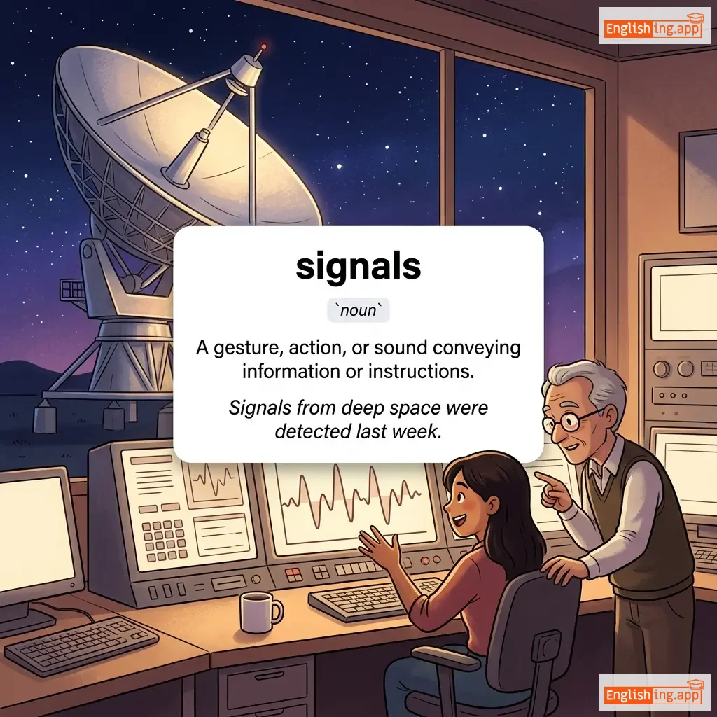 A gesture, action, or sound conveying information or instructions.