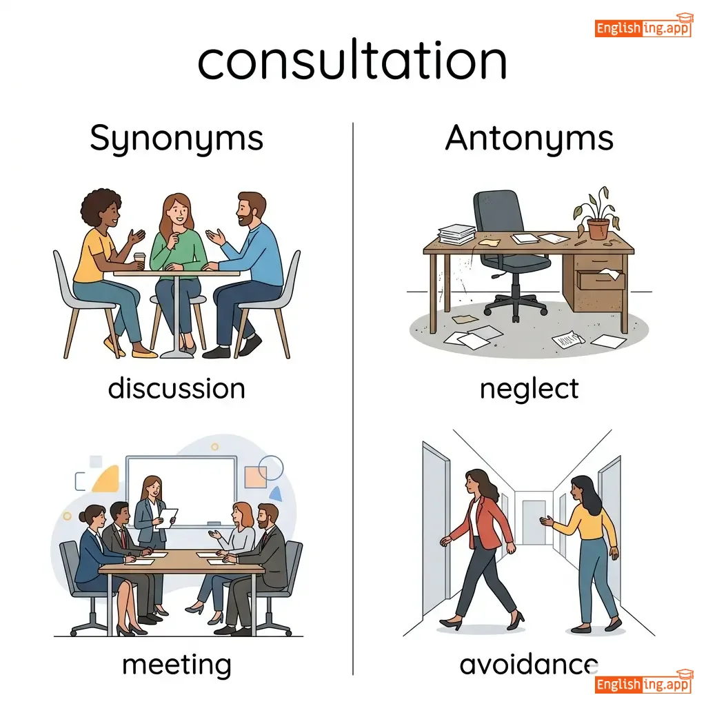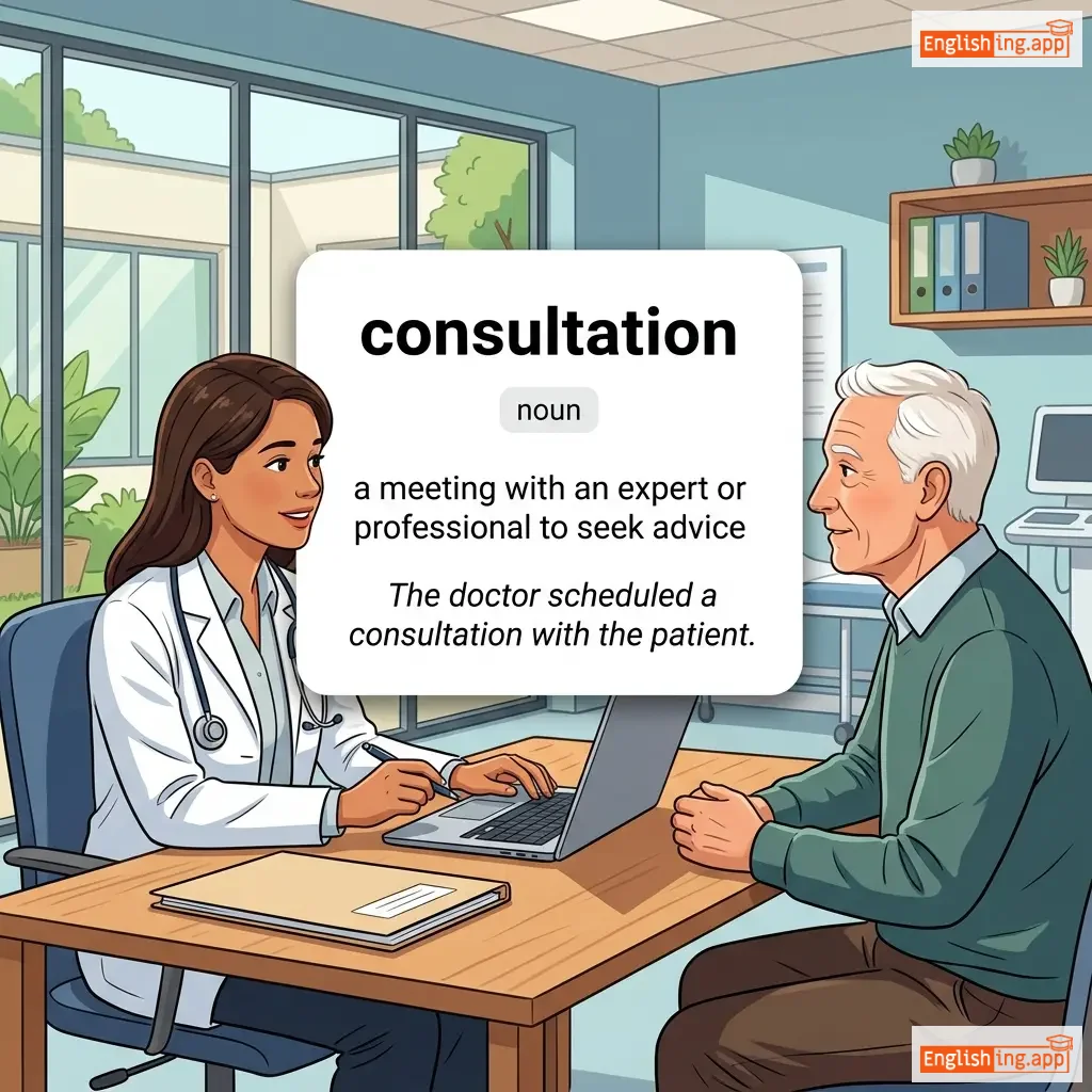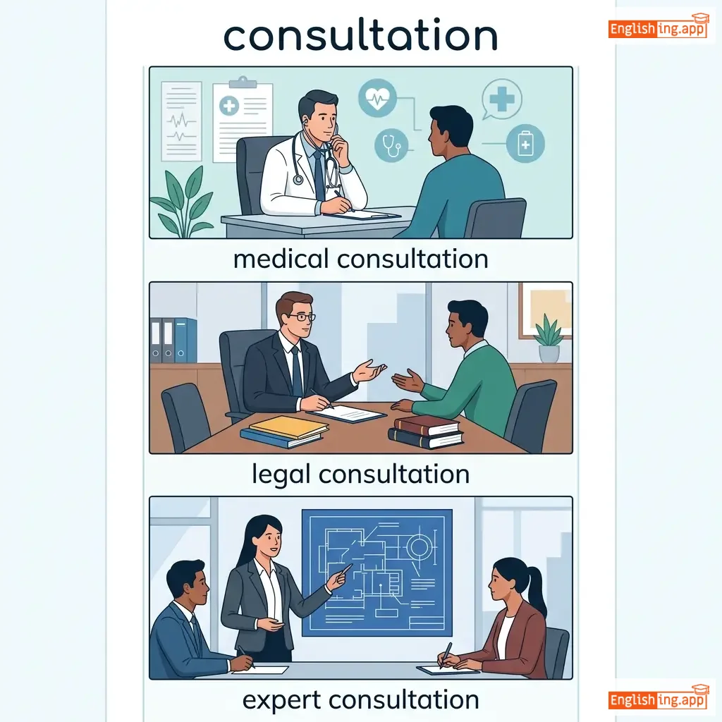 The action of consulting or discussing; a meeting with an expert or professional to seek advice.