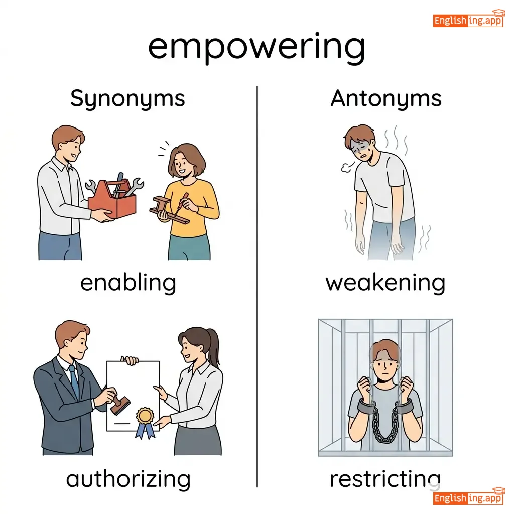 enabling, authorizing, strengthening, encouraging, inspiring, motivating