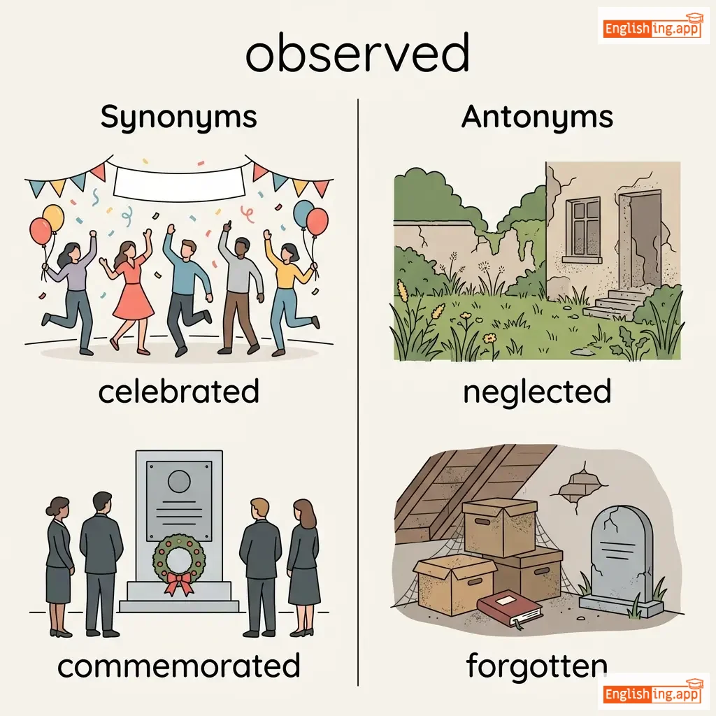 celebrated, commemorated, marked, honored, kept, maintained