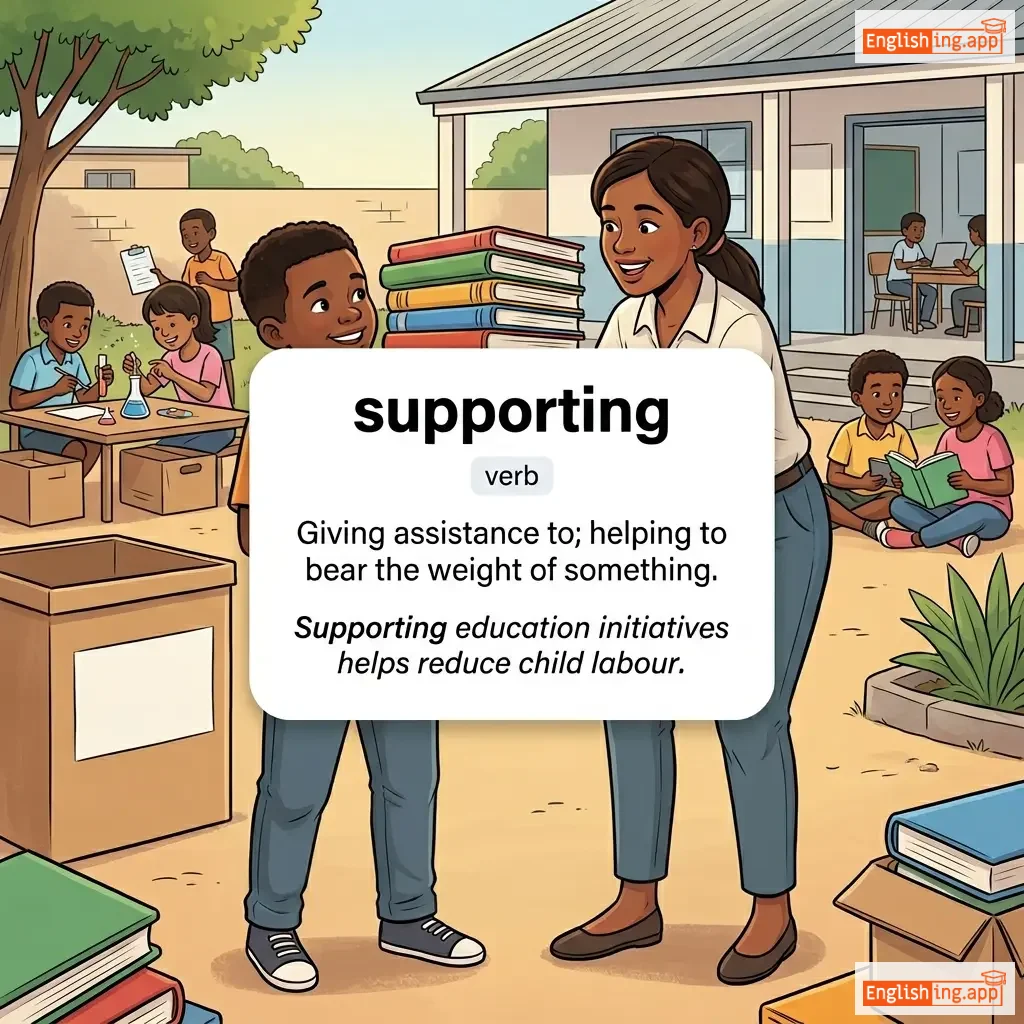 Giving assistance to; helping to bear the weight of something.