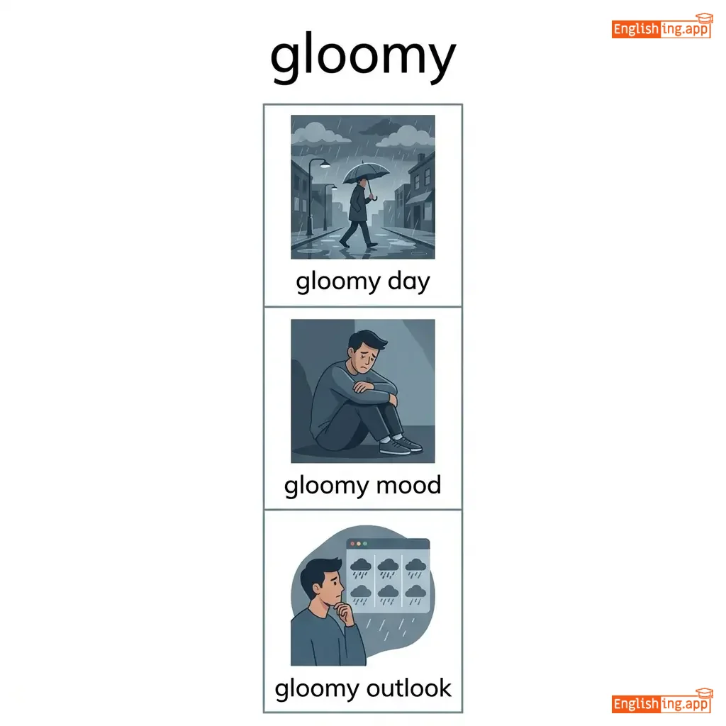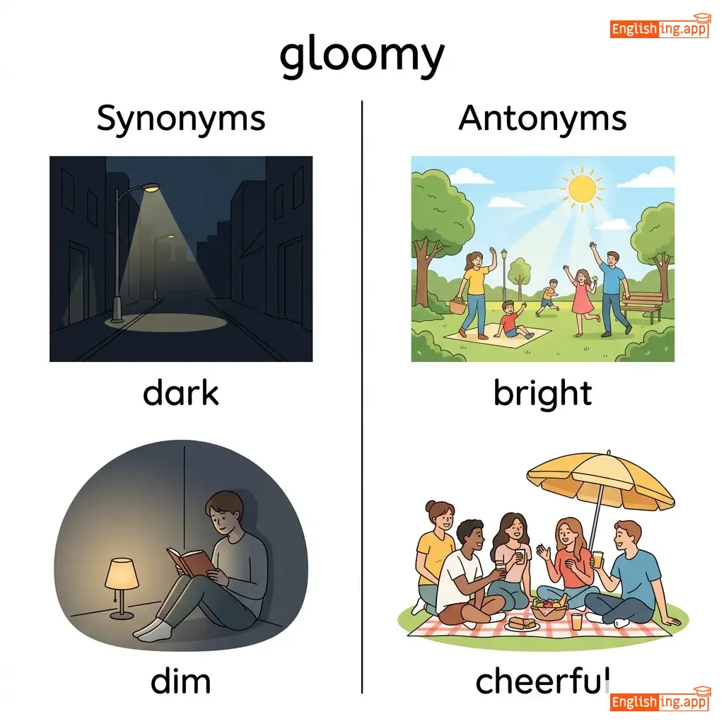 Dark or poorly lit; depressing or pessimistic.