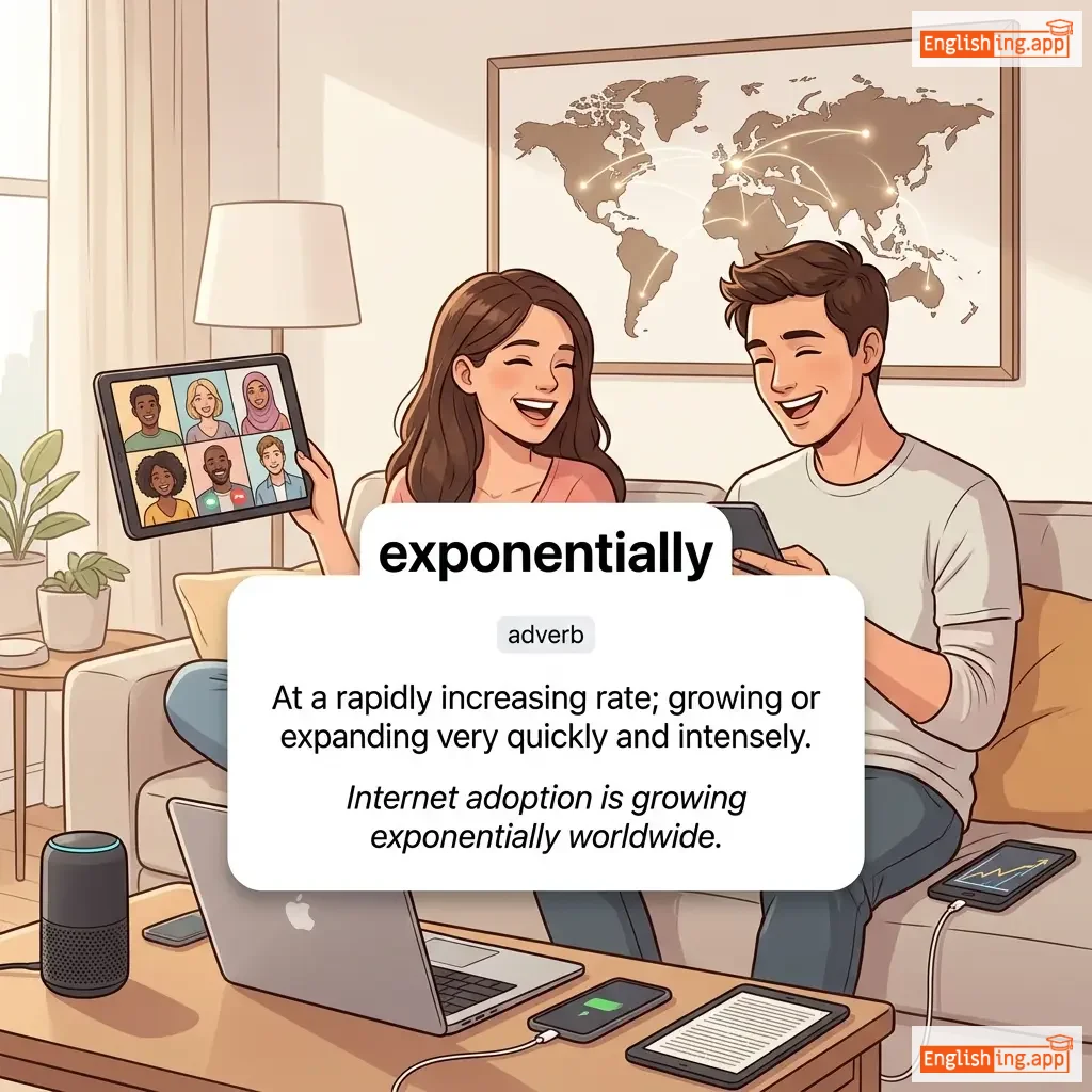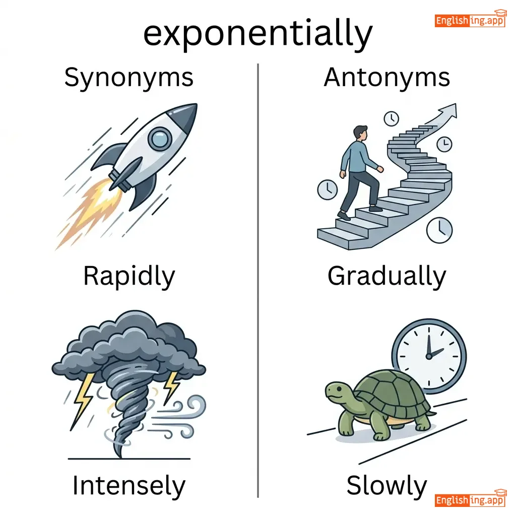 At a rapidly increasing rate; growing or expanding very quickly and intensely.