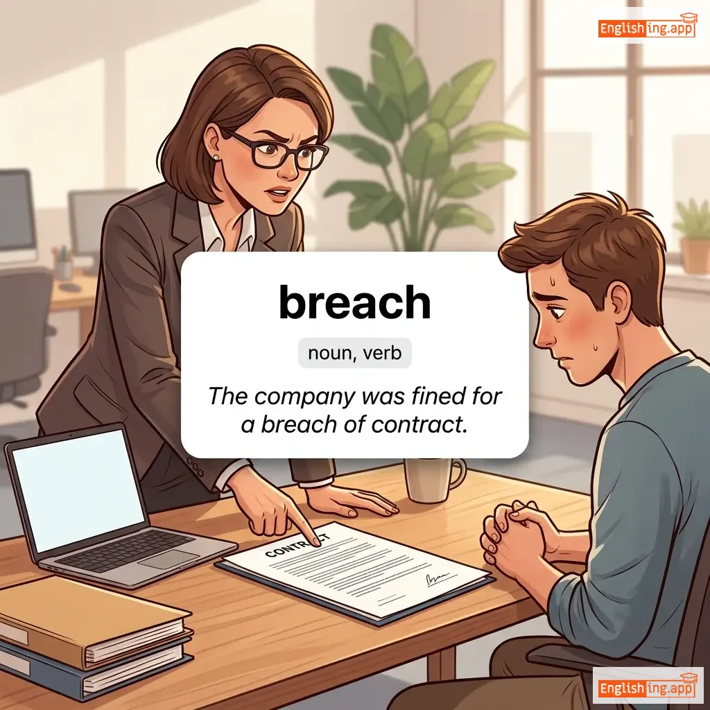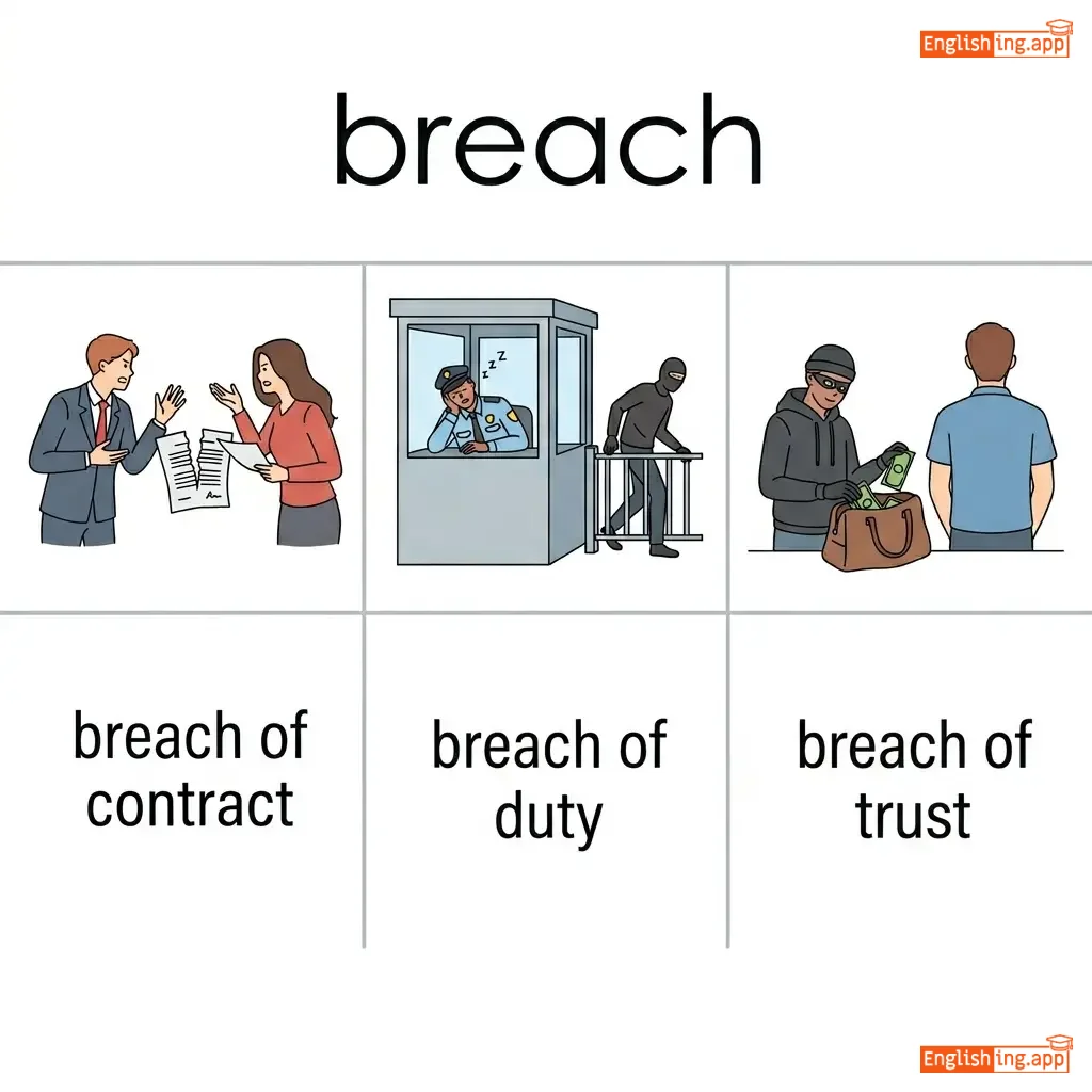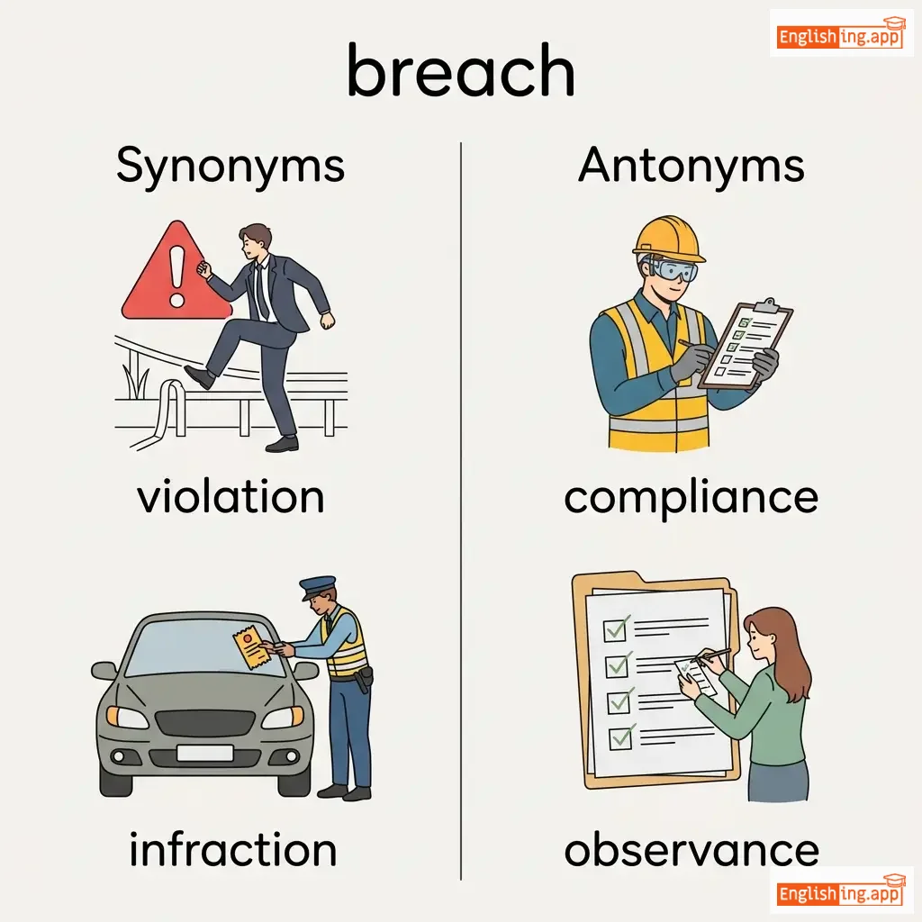 A violation or breaking of a law, agreement, or code of conduct; an act of breaking or failing to observe a law, agreement, or code of conduct.