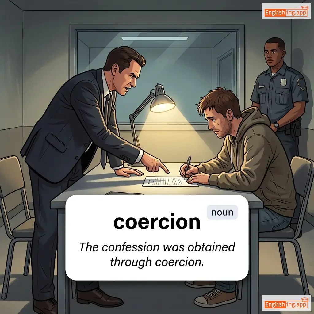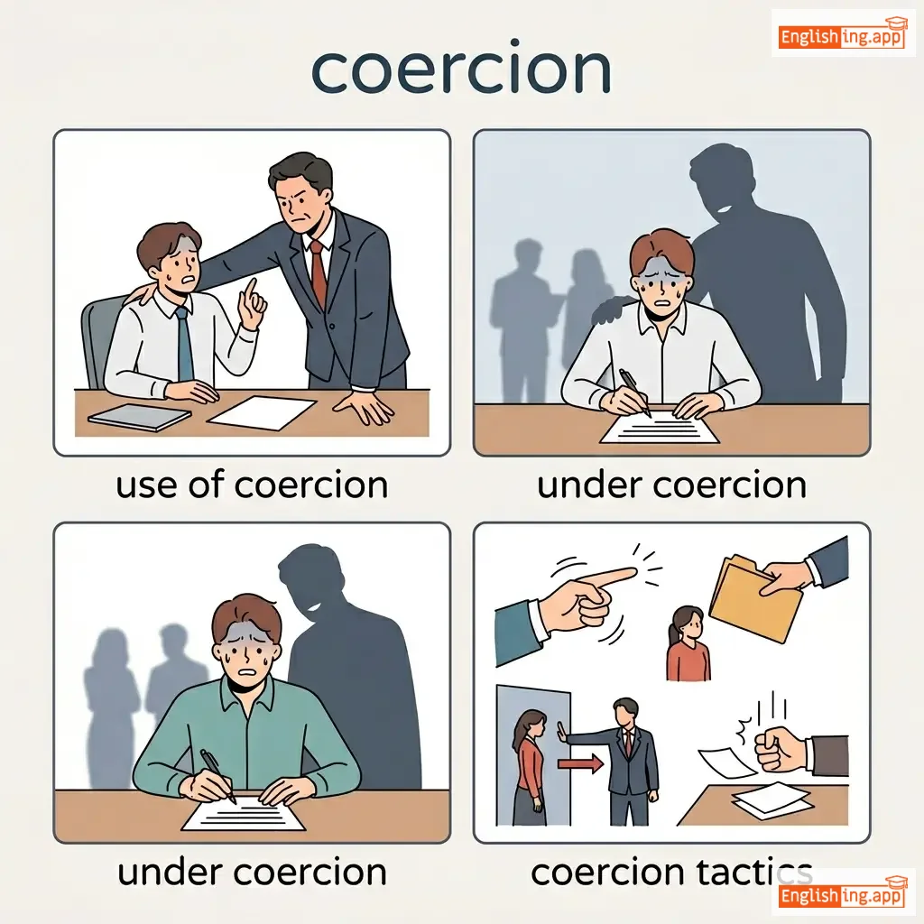 The practice of persuading someone to do something by using force or threats.