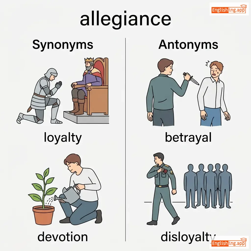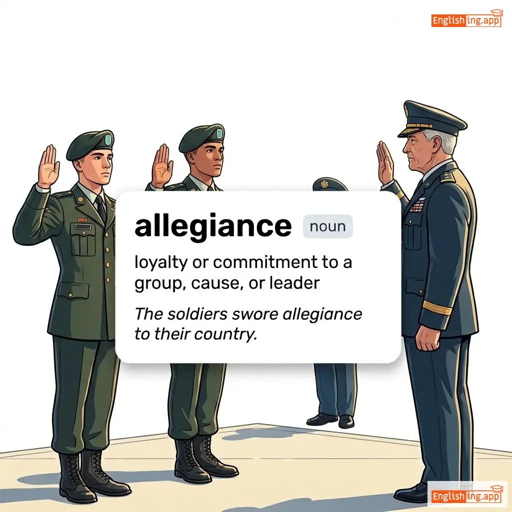 Loyalty or commitment of a subordinate to a superior or of an individual to a group or cause.