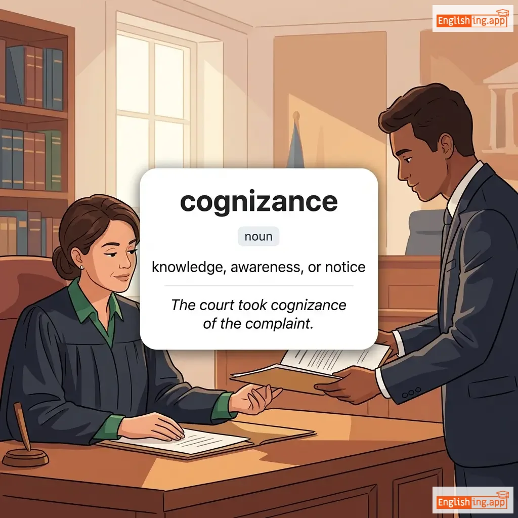 Knowledge or awareness; the action of perceiving or becoming aware of something.