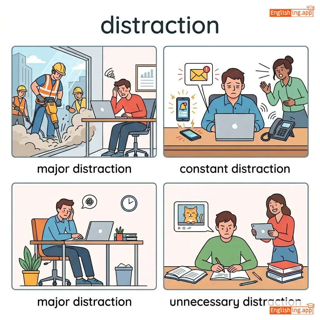 Something that prevents concentration or takes attention away from something else.