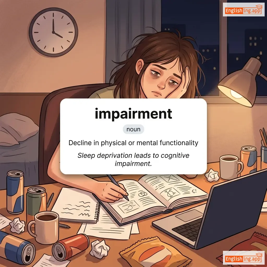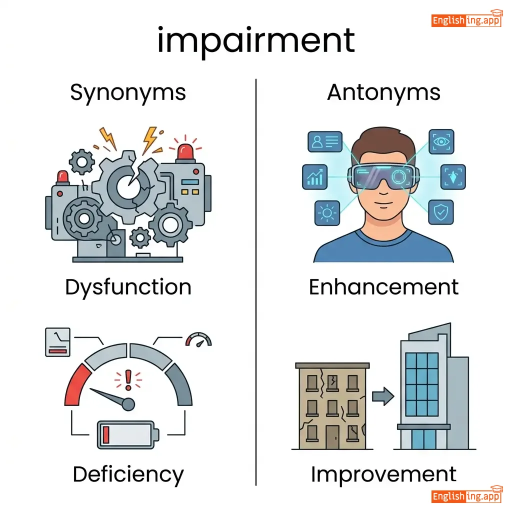 The state of being damaged or weakened; a disability or handicap.