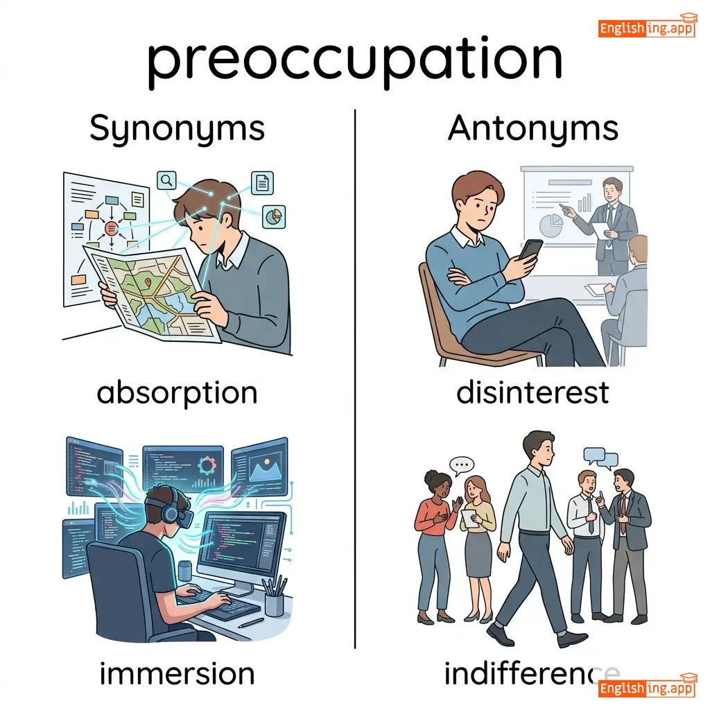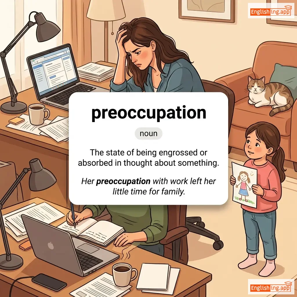 His preoccupation with work led to neglecting his personal life. |