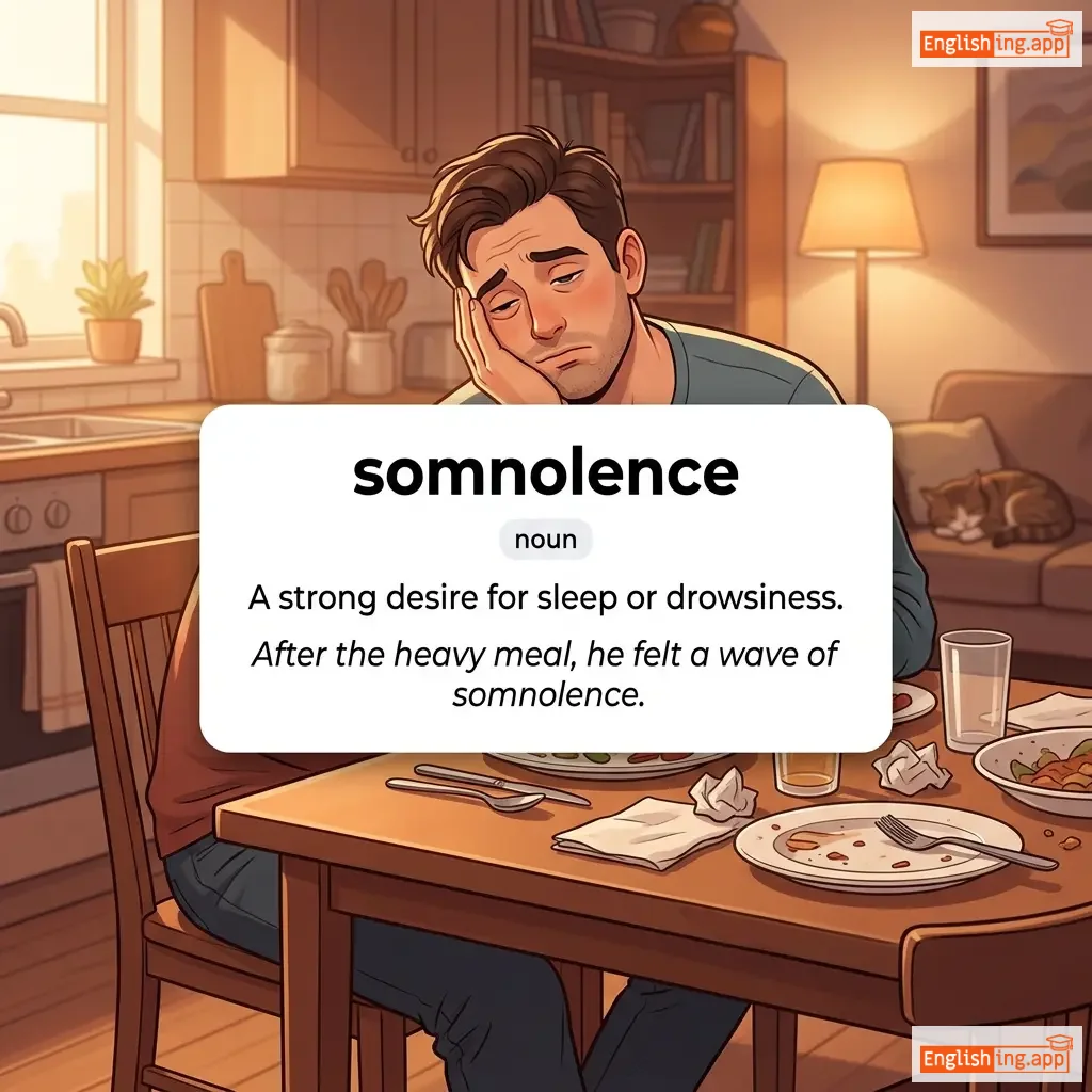 The somnolence after a heavy meal made it hard to concentrate. |