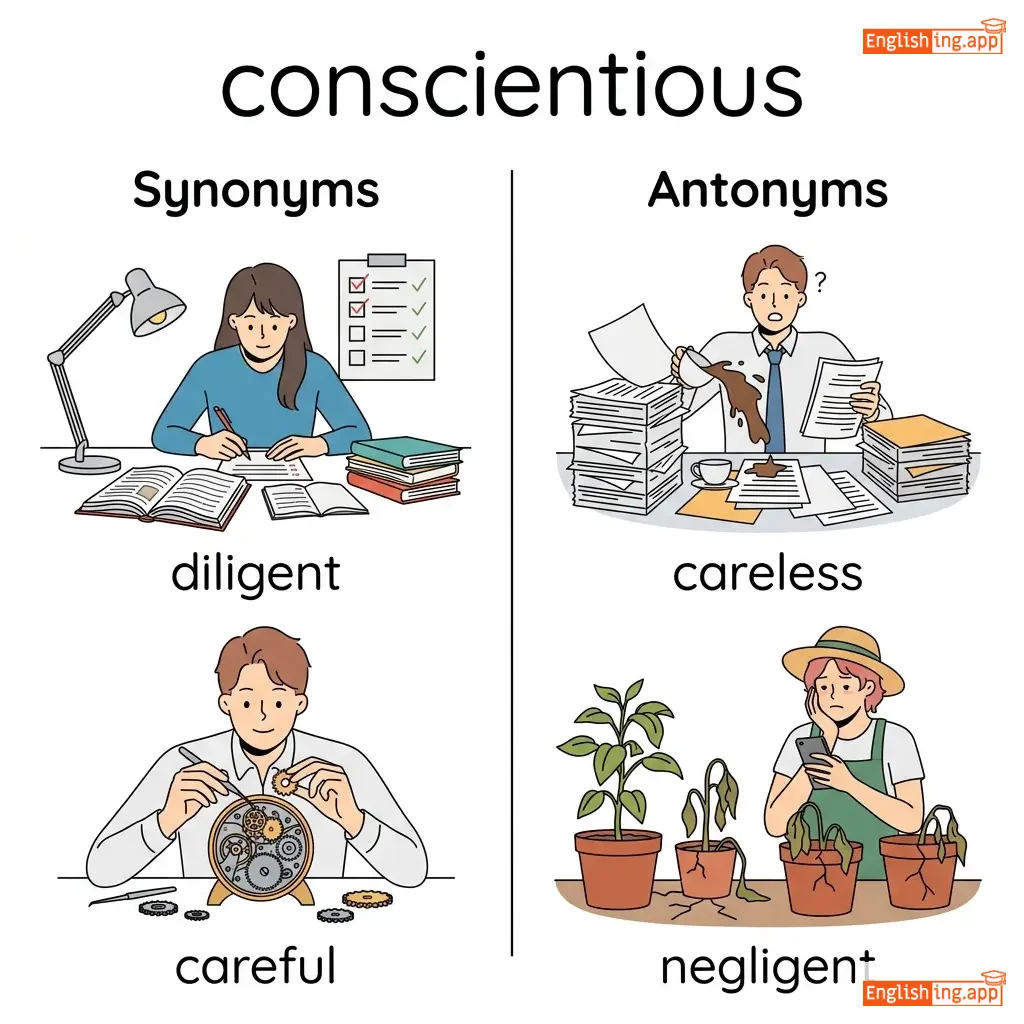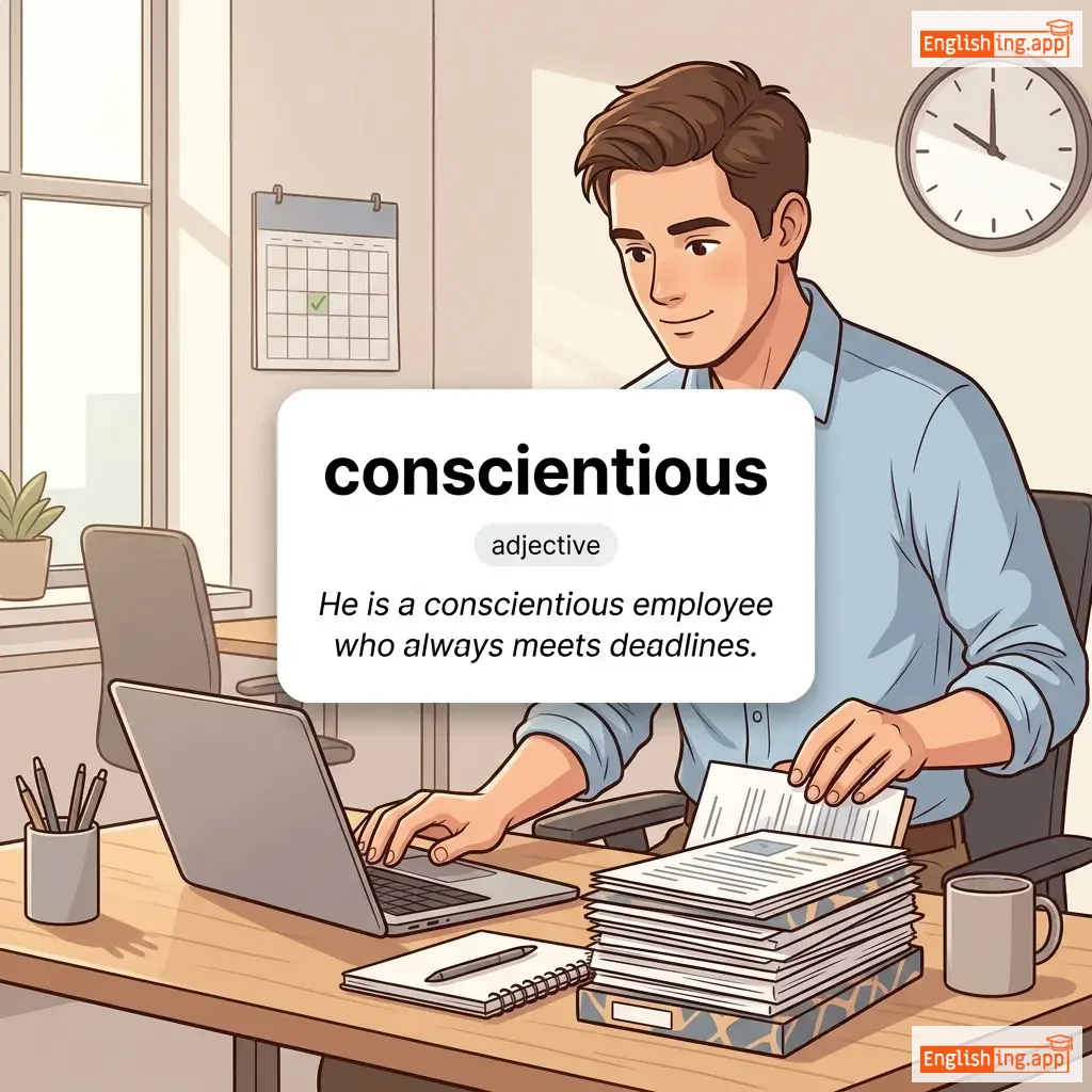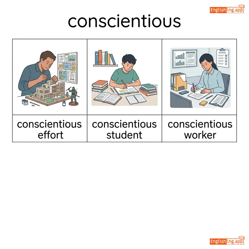 Wishing to do what is right, especially to do one's work or duty well and thoroughly.