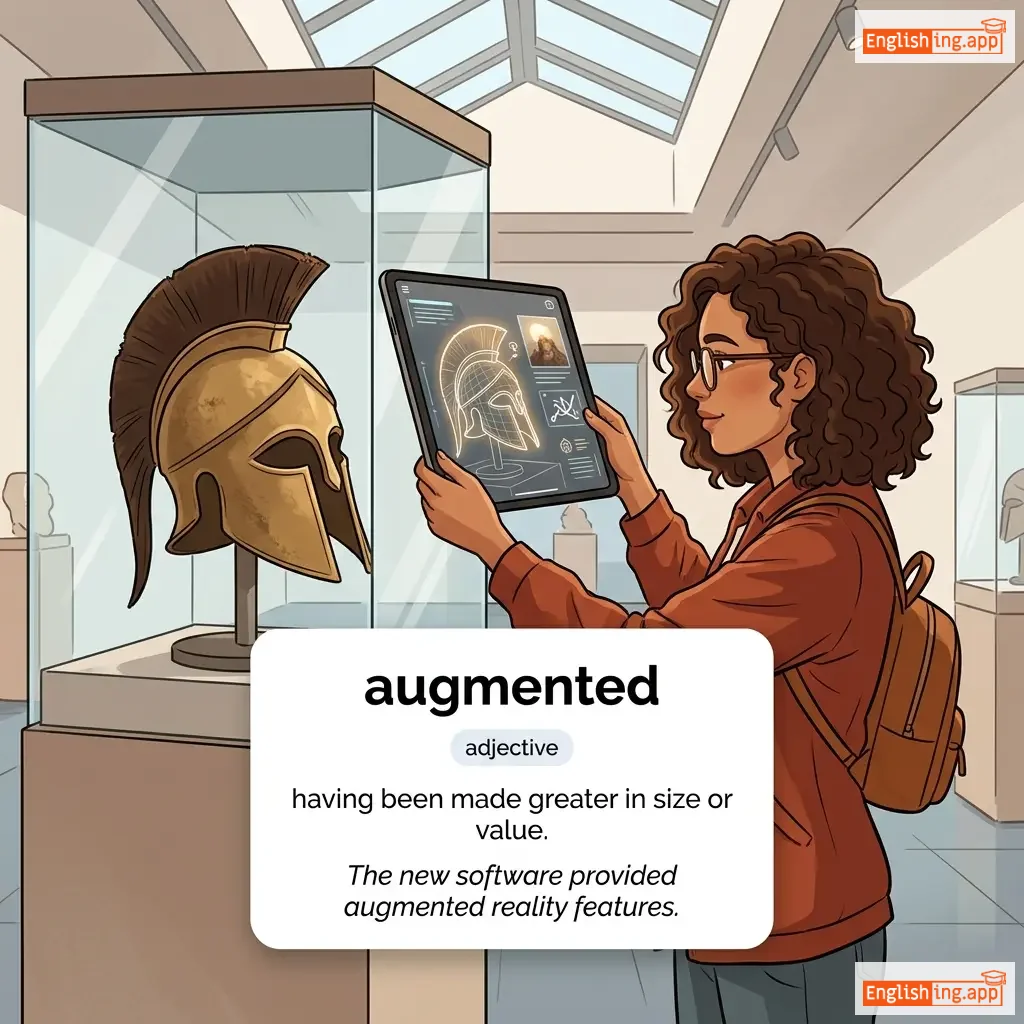 having been made greater in size or value.