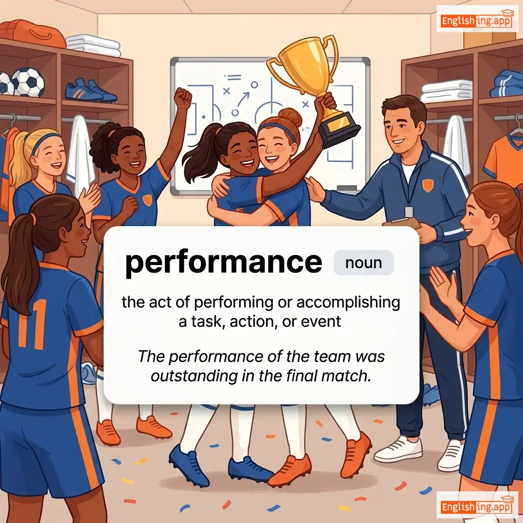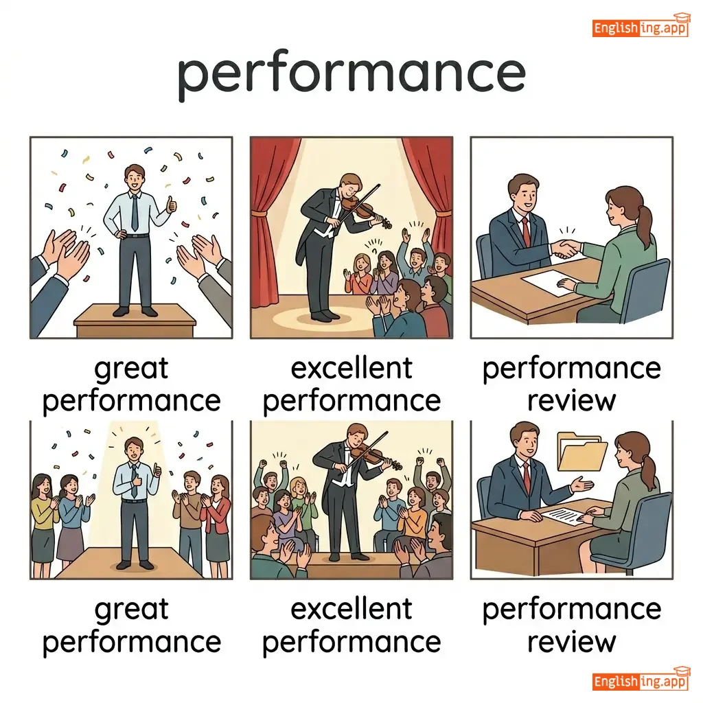 the action of presenting a play, concert, or other form of entertainment; how well someone does a task