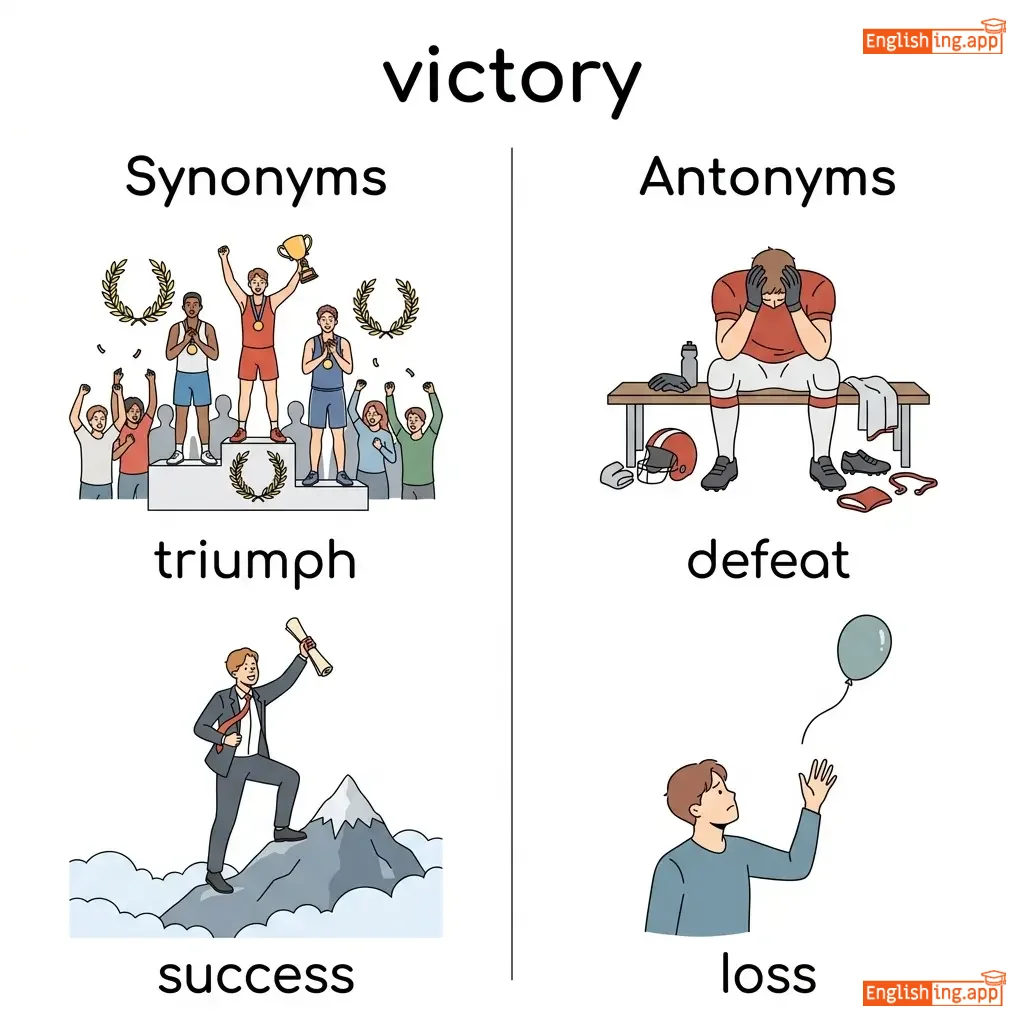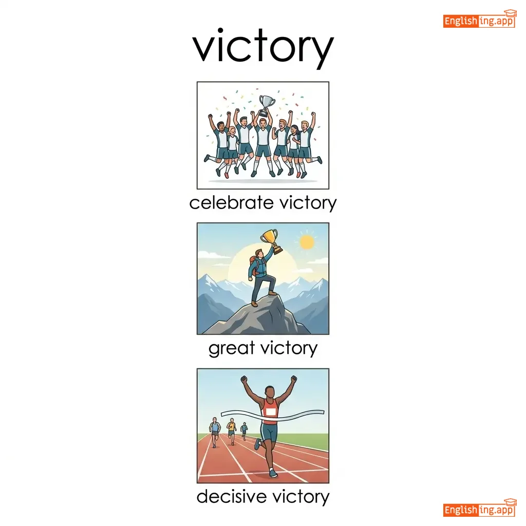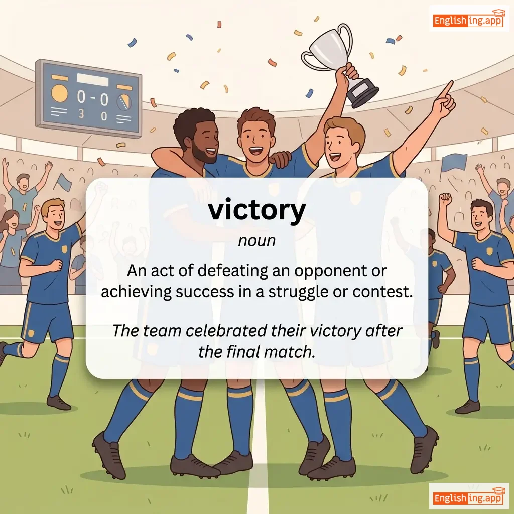 An act of defeating an opponent or achieving success in a struggle or contest.
