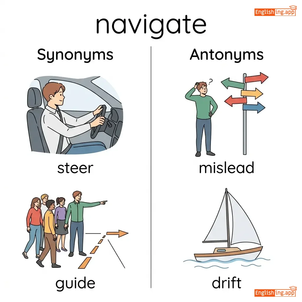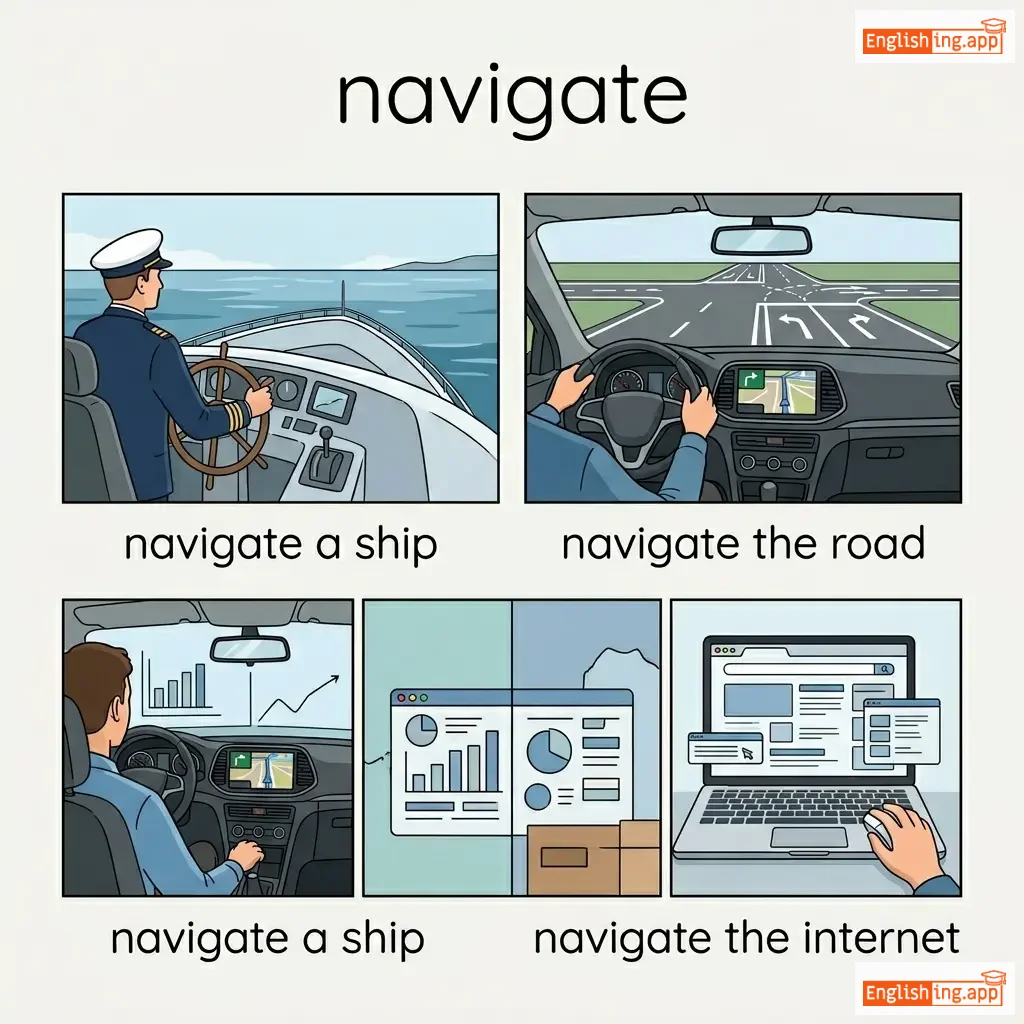navigate a ship, navigate the road, navigate the internet, navigate through