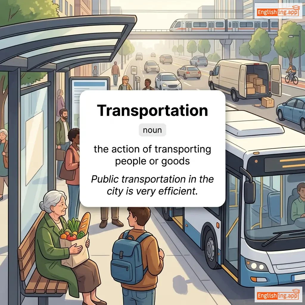 the action of transporting people or goods