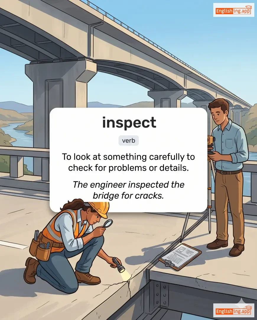 To look at something carefully to check for problems or details.
