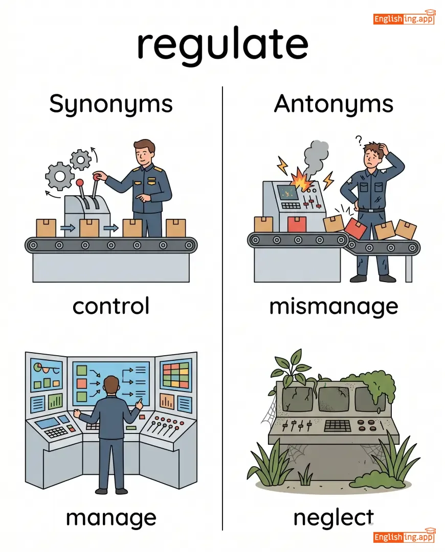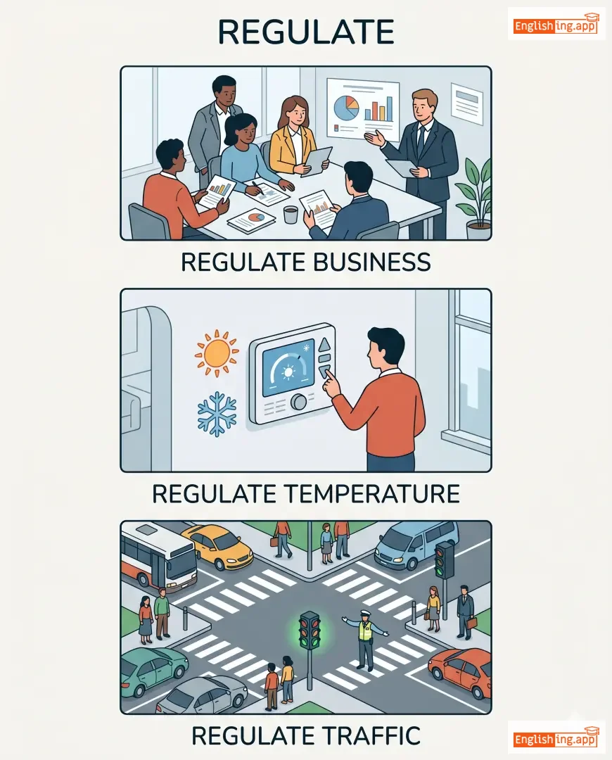 regulate business, regulate temperature, regulate traffic, regulate industry