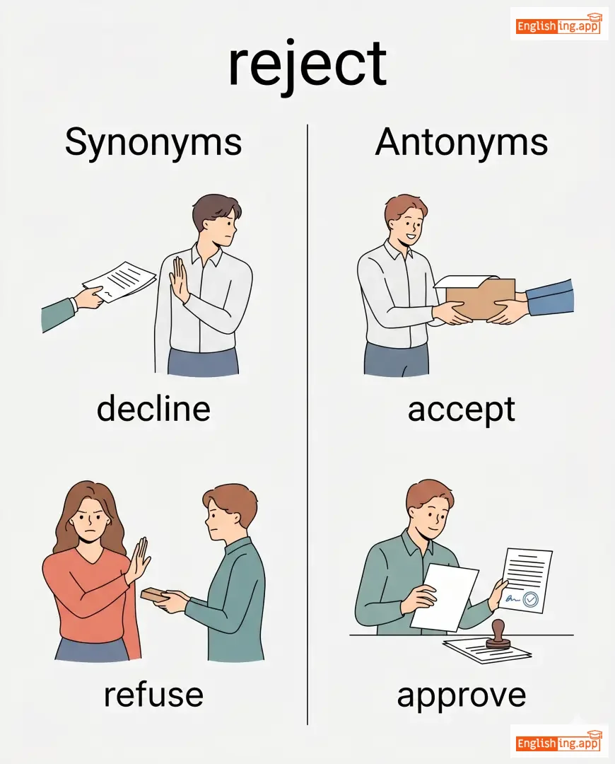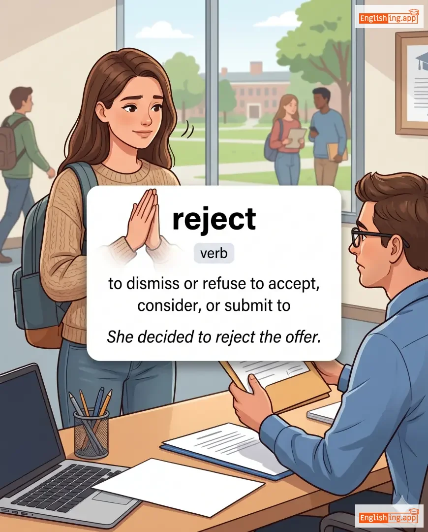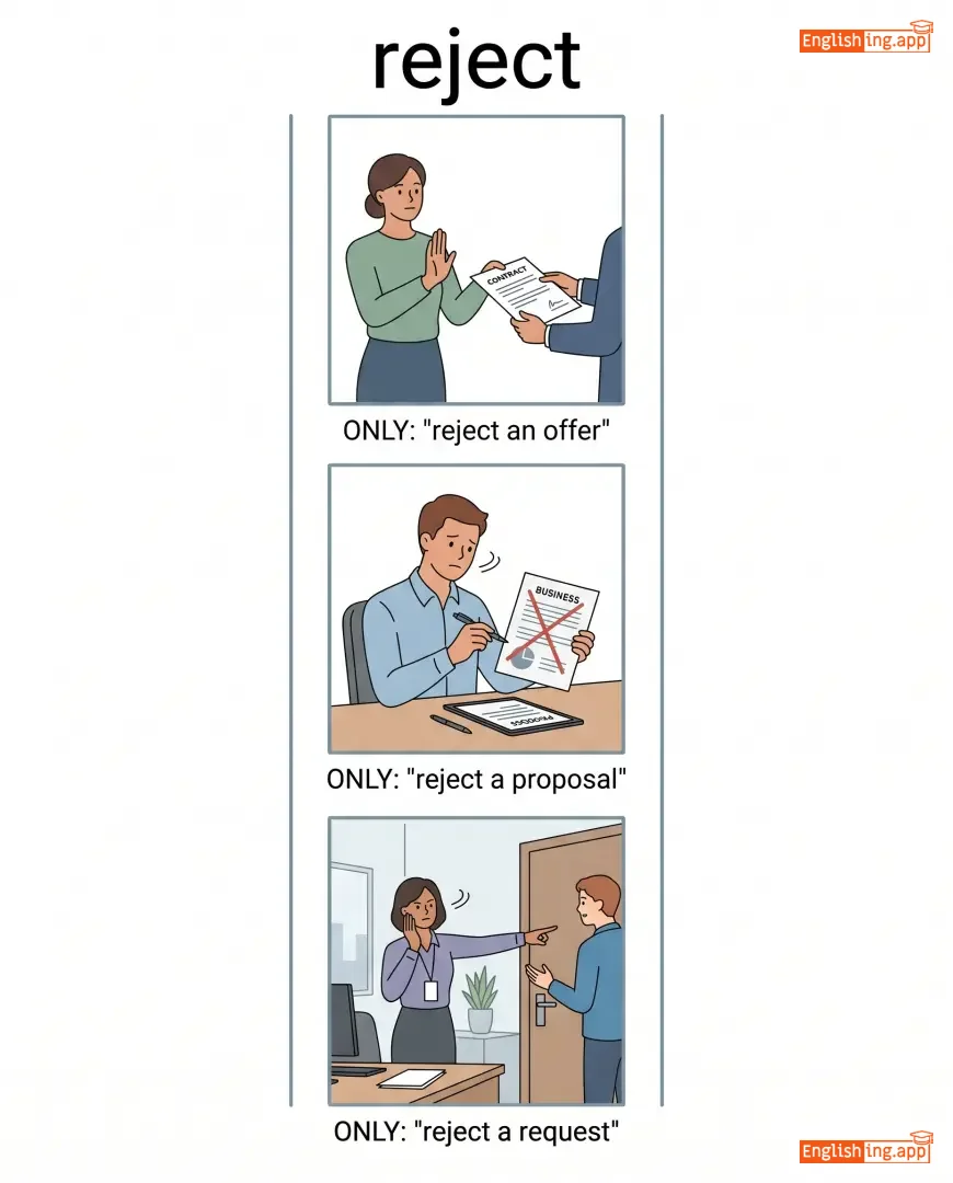 firmly reject, completely reject, reject outright, reject a proposal, reject an offer