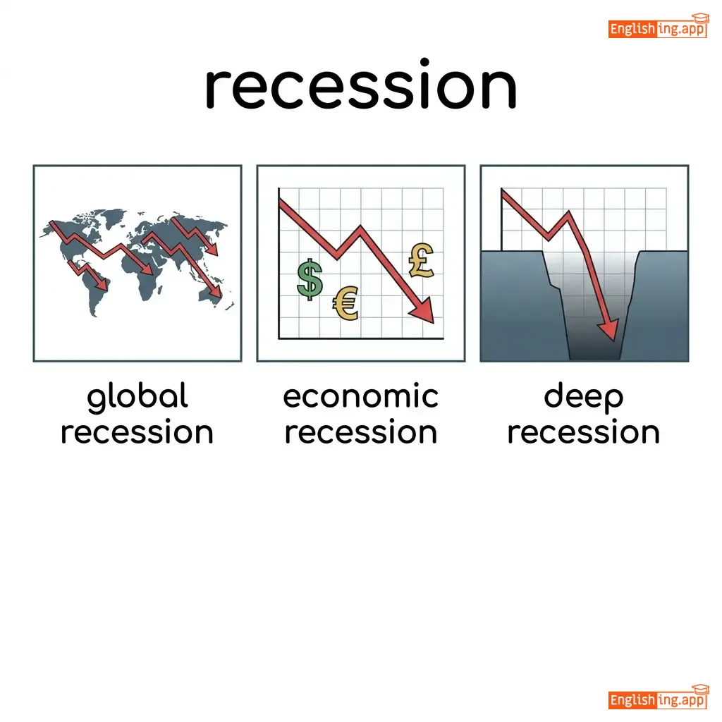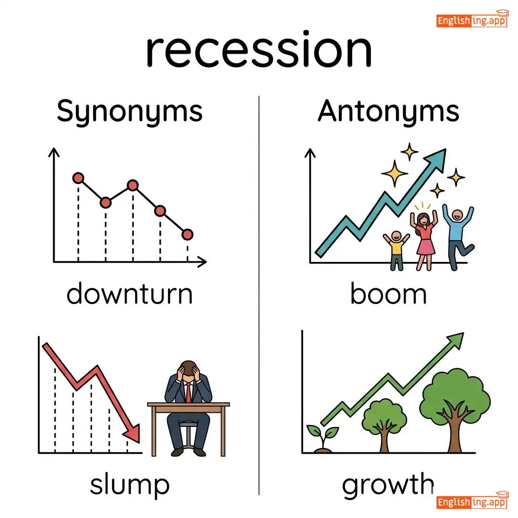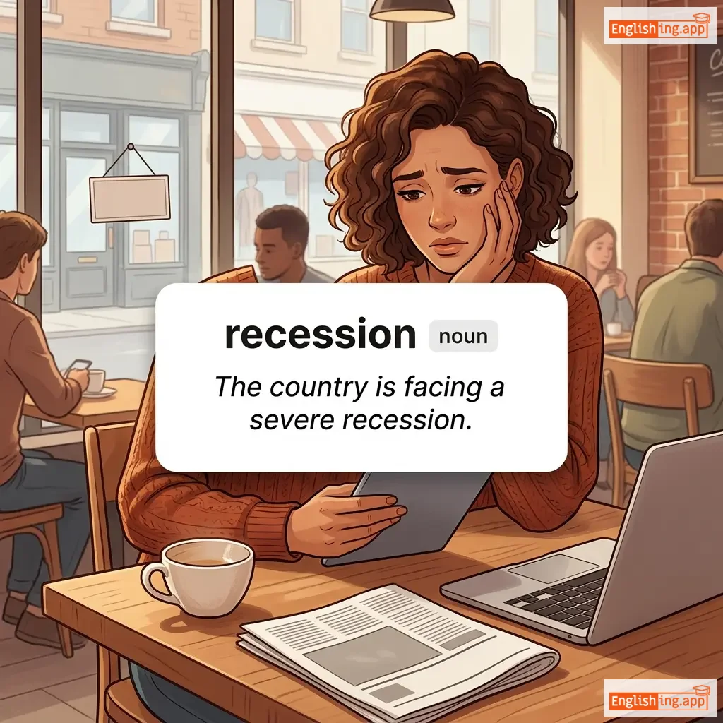 A period of temporary economic decline during which trade and industrial activity are reduced.