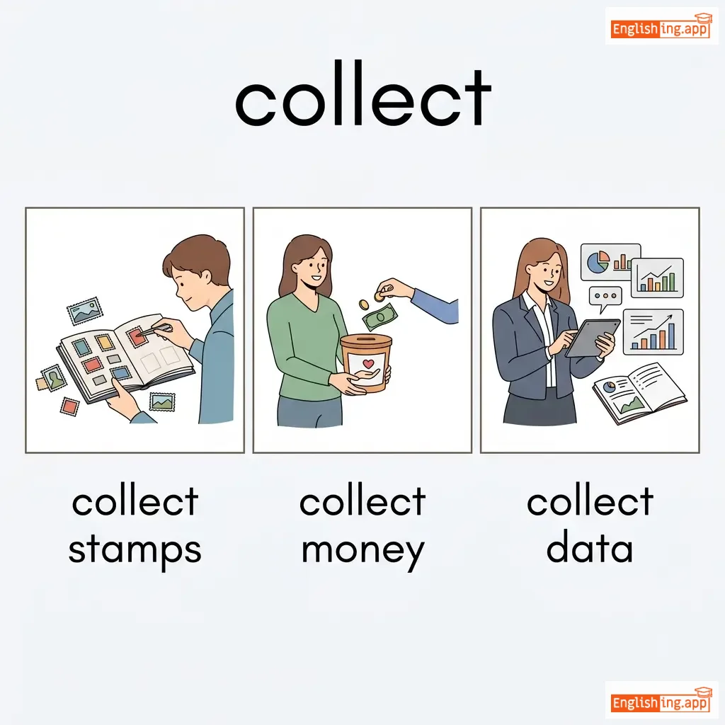 collect stamps, collect money, collect data, collect garbage