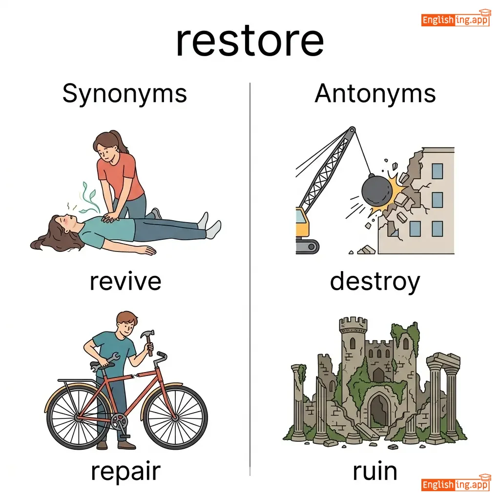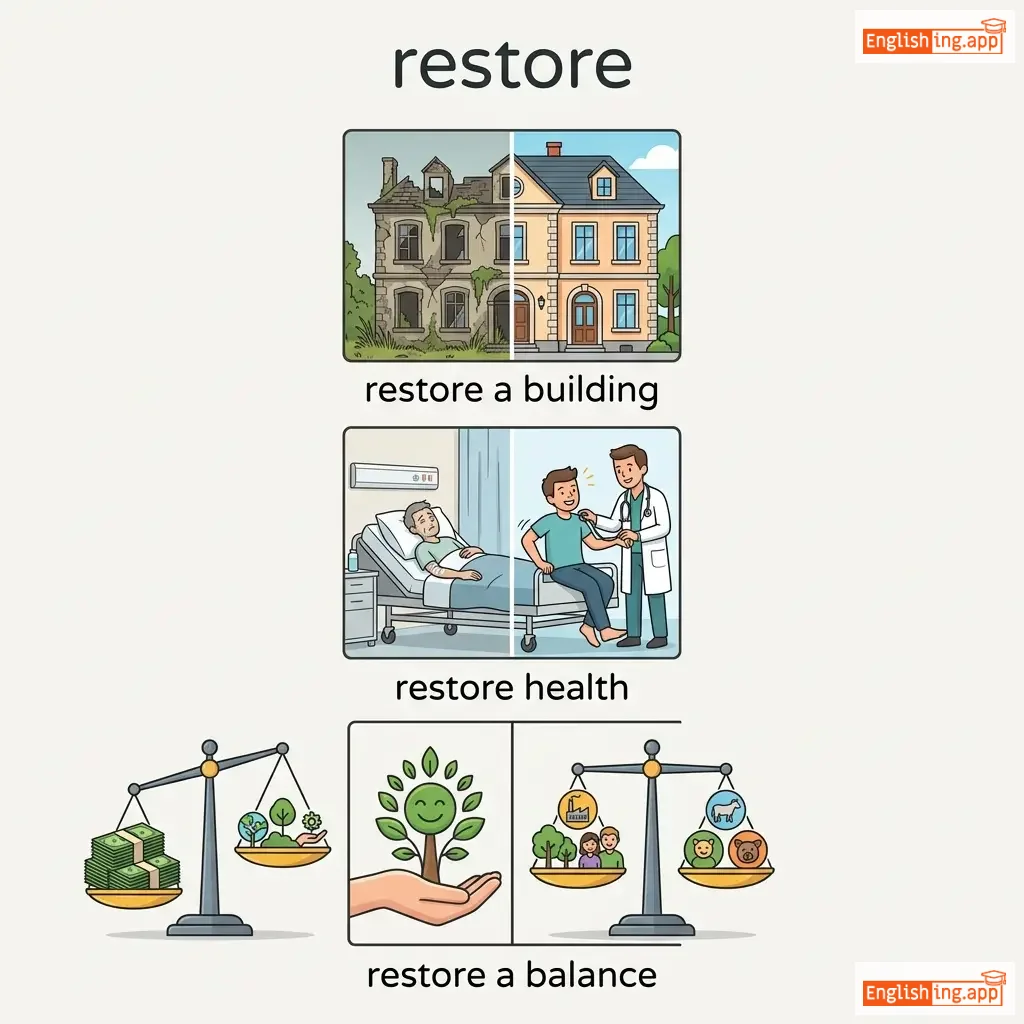 restore a building, restore health, restore a balance, restore the system