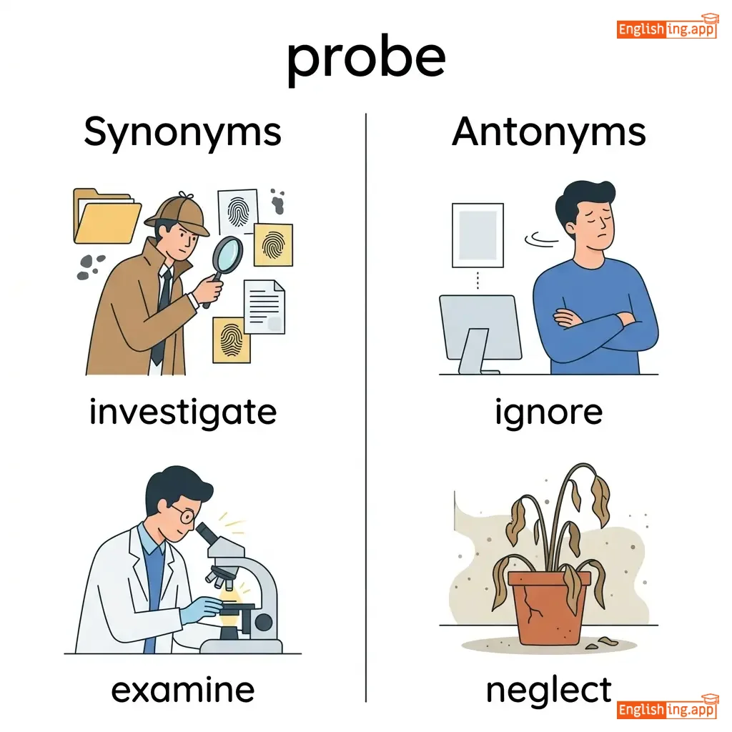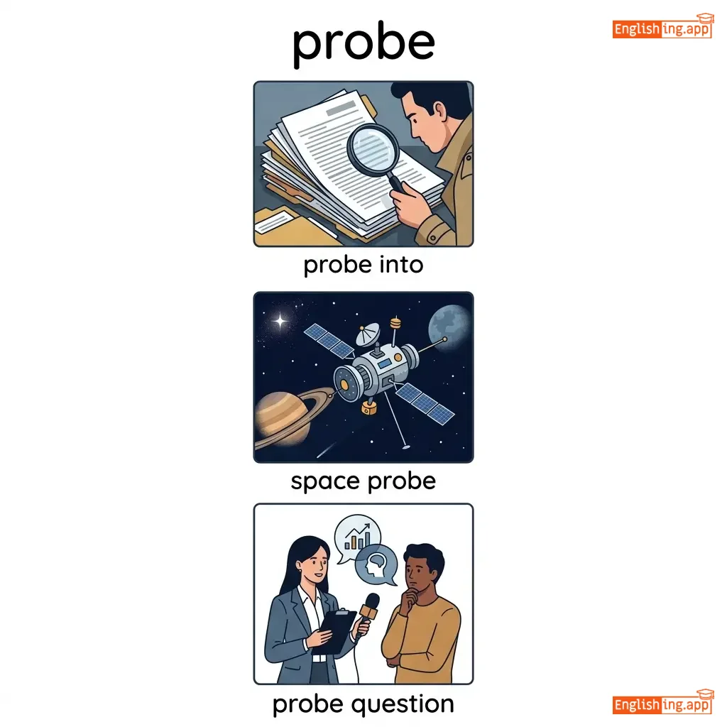probe into, space probe, probe question, probe deeper