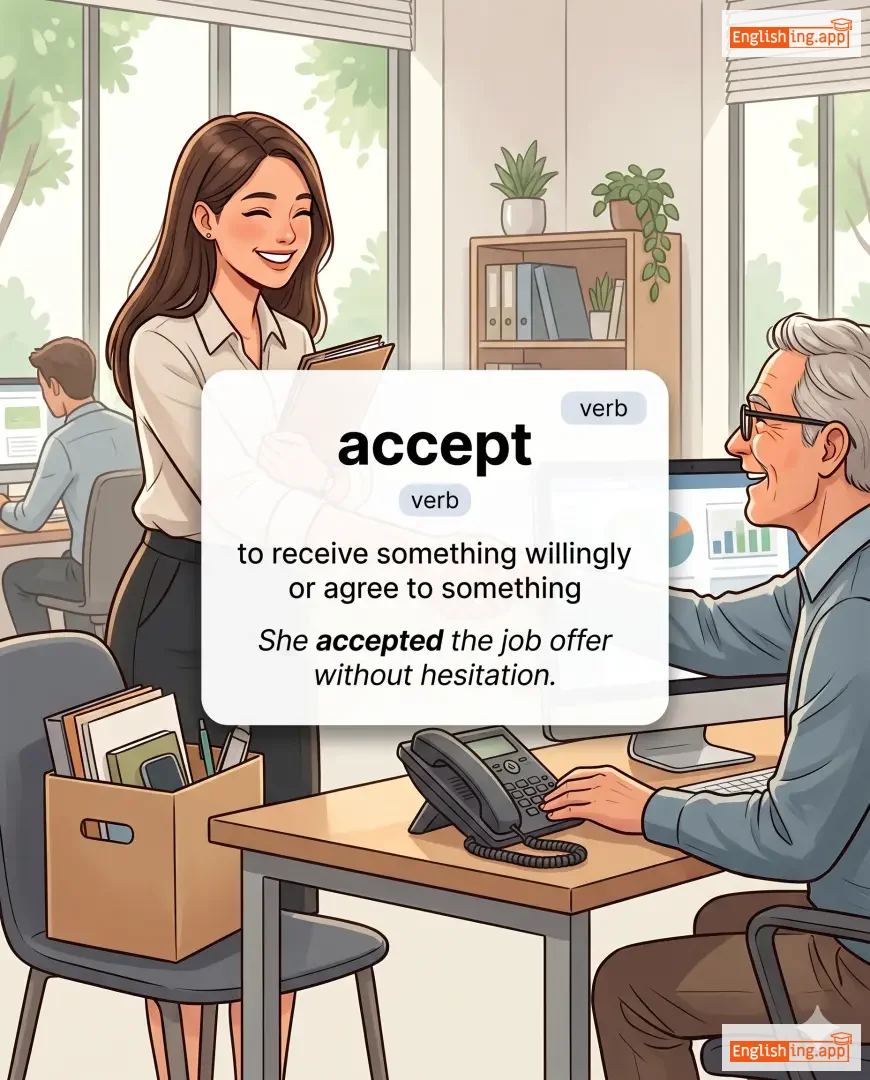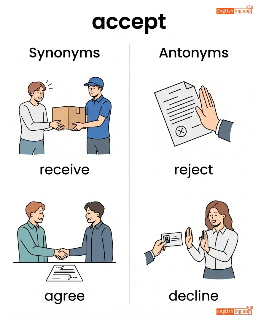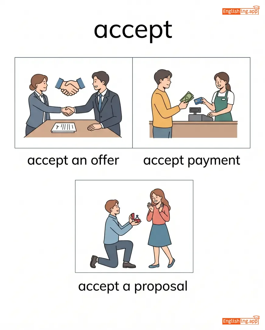 accept an offer, accept payment, accept a proposal, accept responsibility