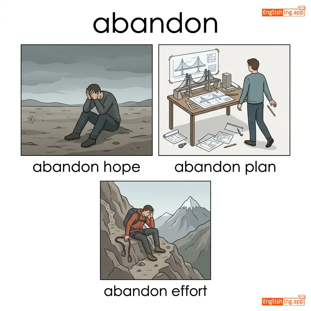 abandon hope, abandon plan, abandon effort, abandon project
