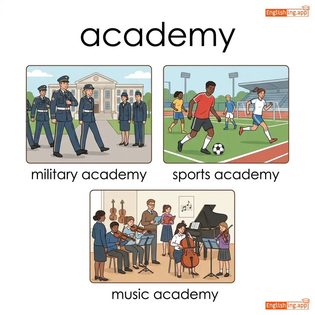 military academy, sports academy, music academy, national academy