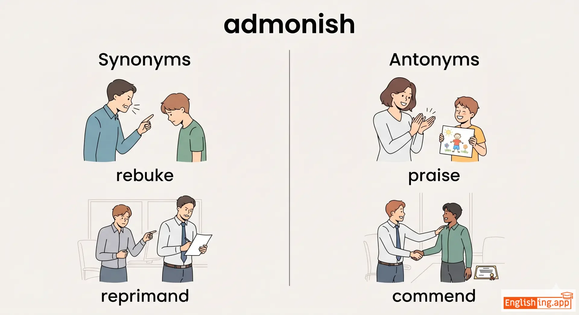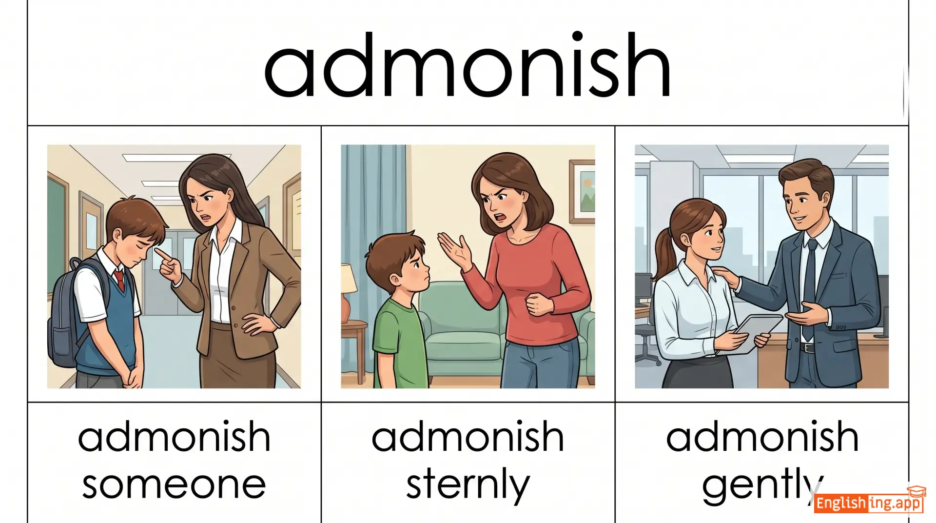 admonish someone, admonish sternly, admonish gently, admonish for behavior