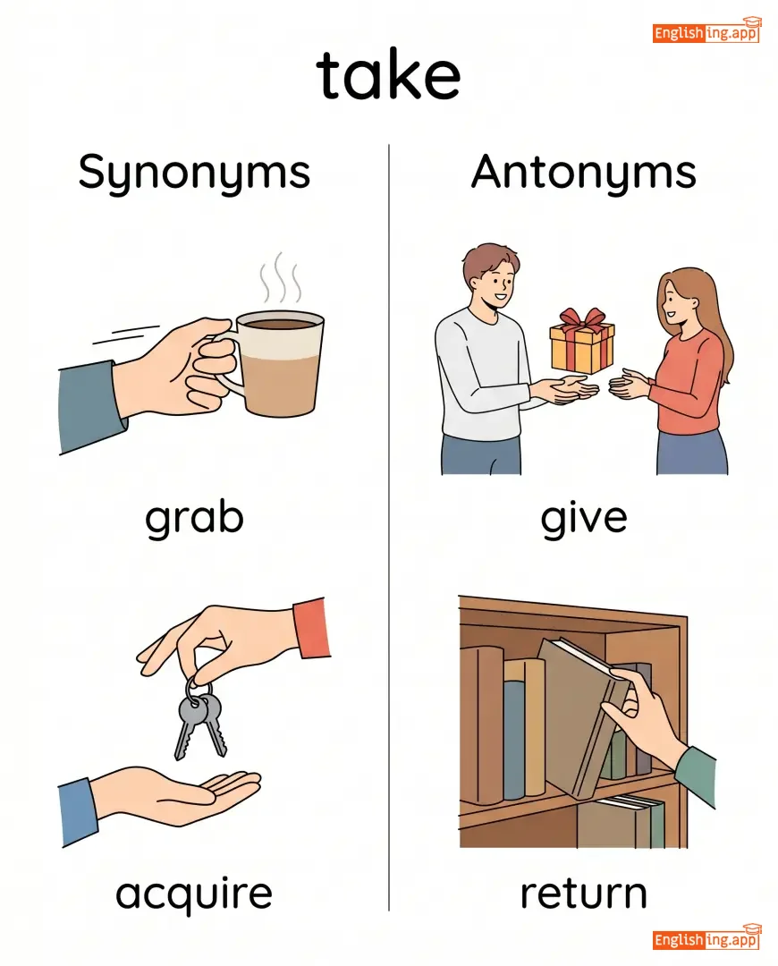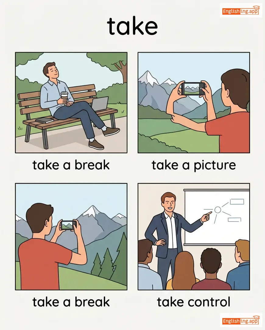 Word | Images | Past | Past Participle | Third Person Singular | Gerund | Meaning | Example Sentence | Example Expression | Example Expression Meaning | Synonyms | Antonyms | Collocations |