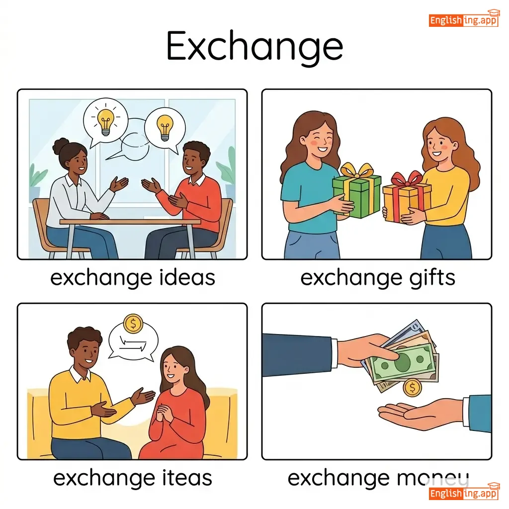 exchange ideas, exchange gifts, exchange money, exchange information