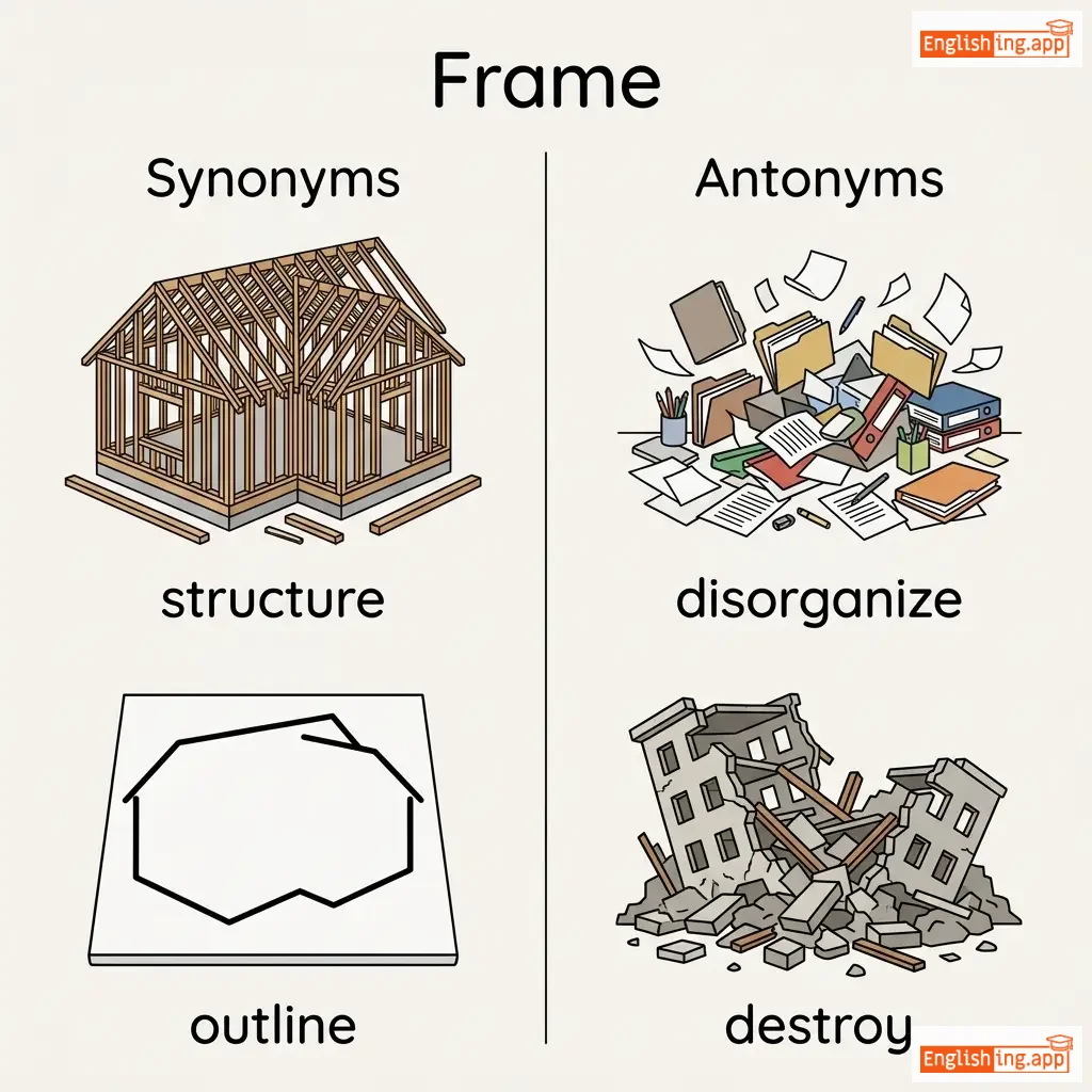 A rigid structure that surrounds or encloses something; to construct or formulate.