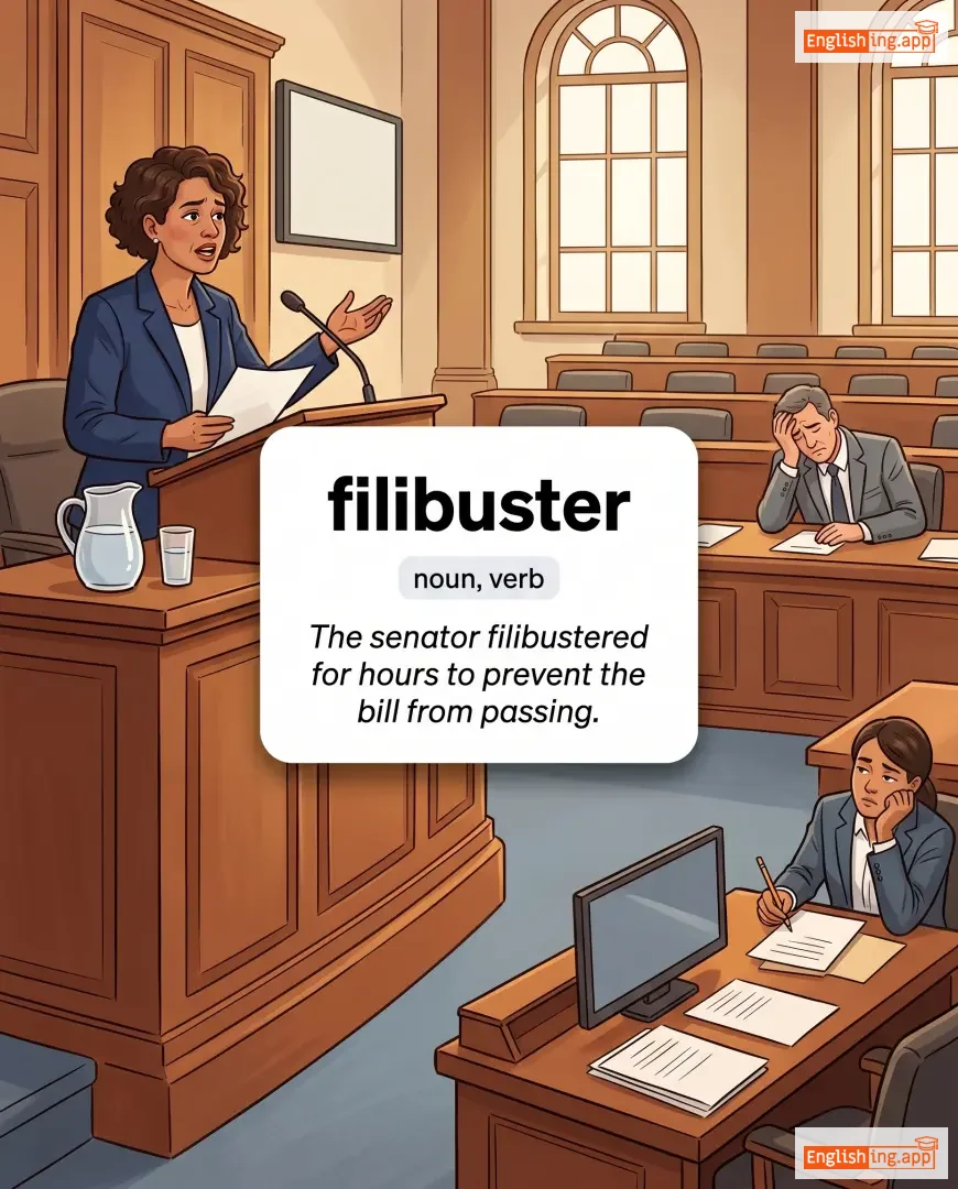 The senator filibustered for hours to prevent the bill from passing. |