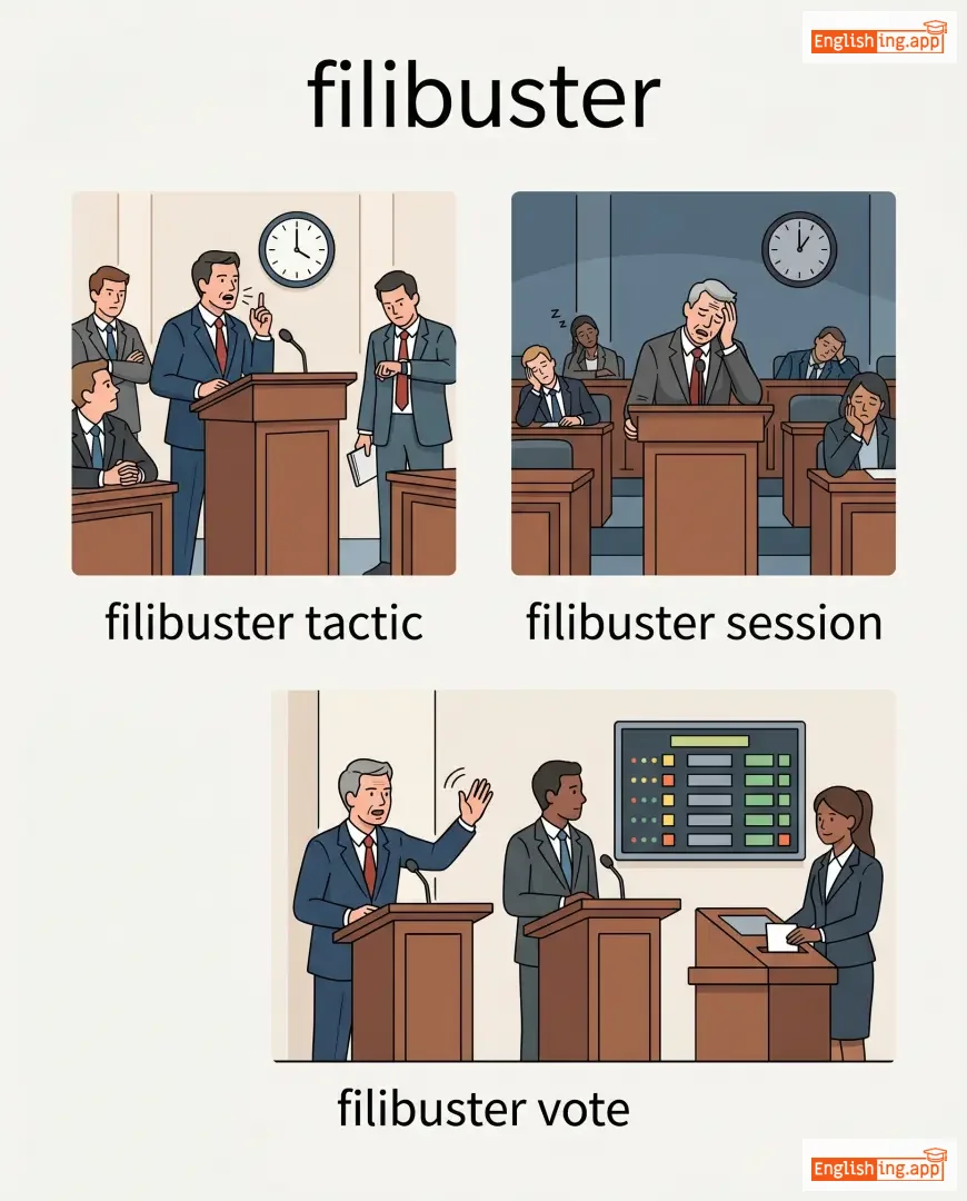 filibuster tactic, filibuster session, filibuster vote