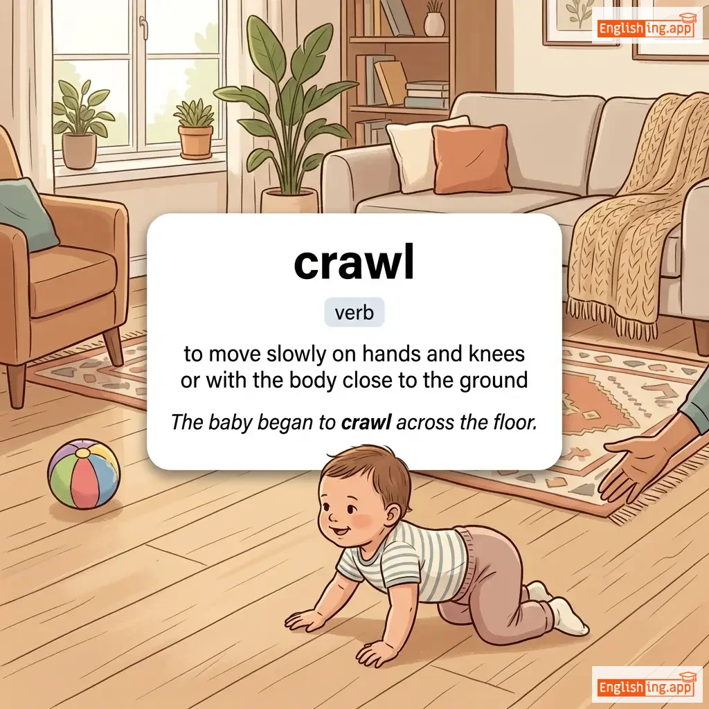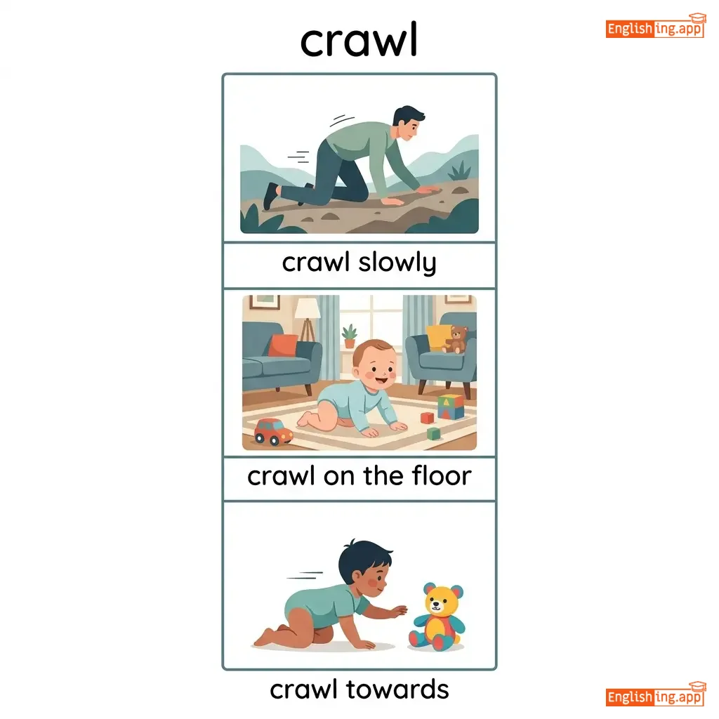 crawl slowly, crawl on the floor, crawl towards, baby crawl