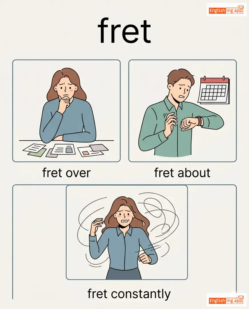 fret over, fret about, fret constantly, fret needlessly
