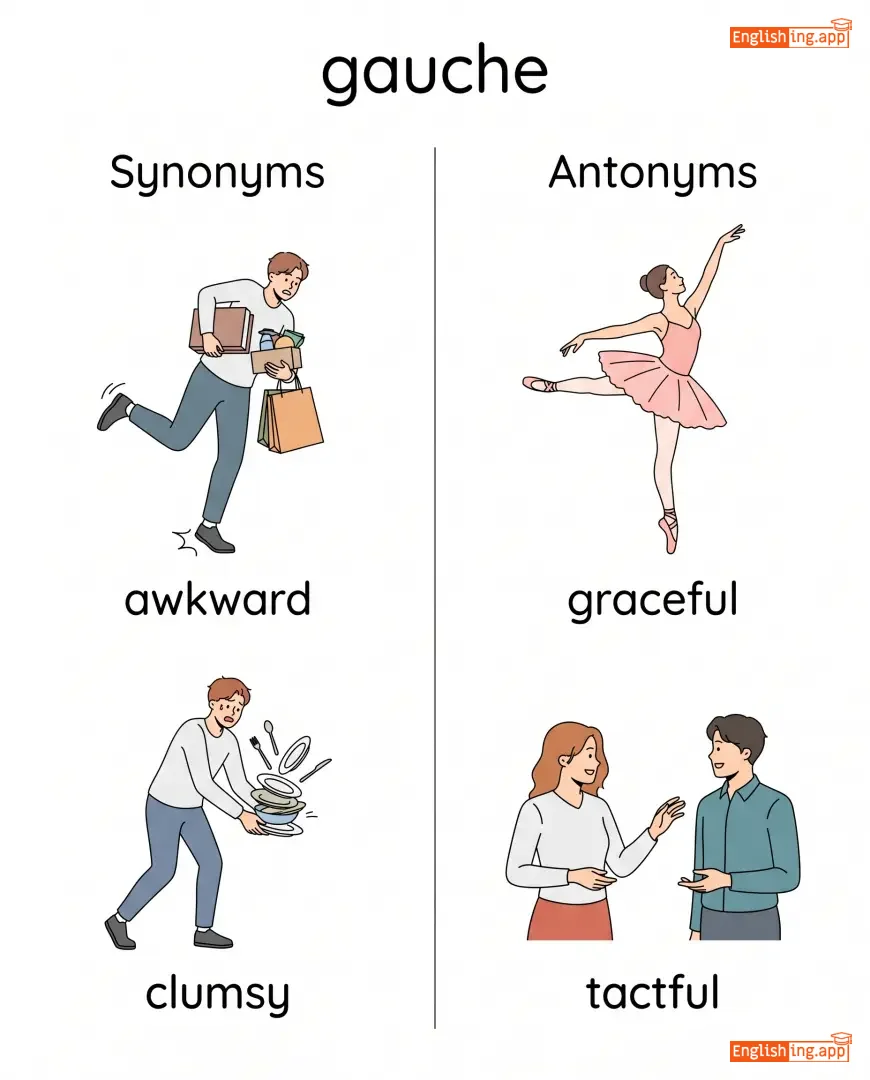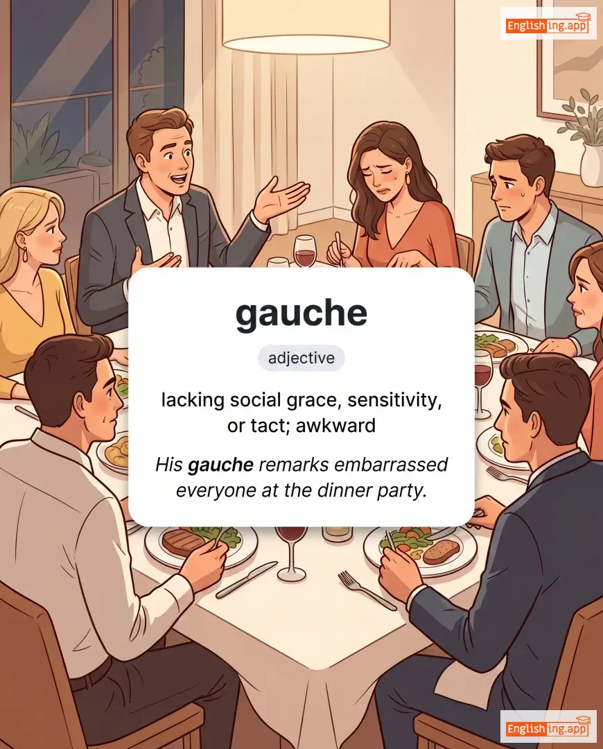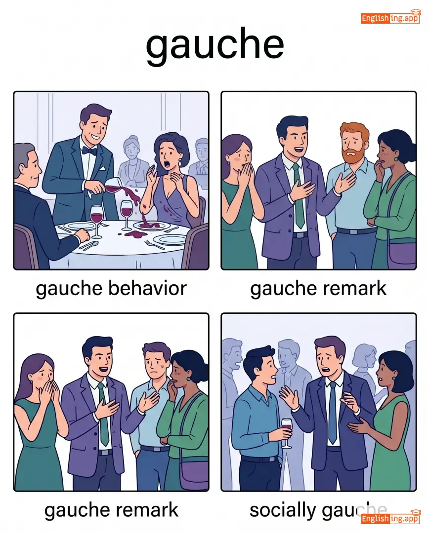 gauche behavior, gauche remark, socially gauche, gauche manner