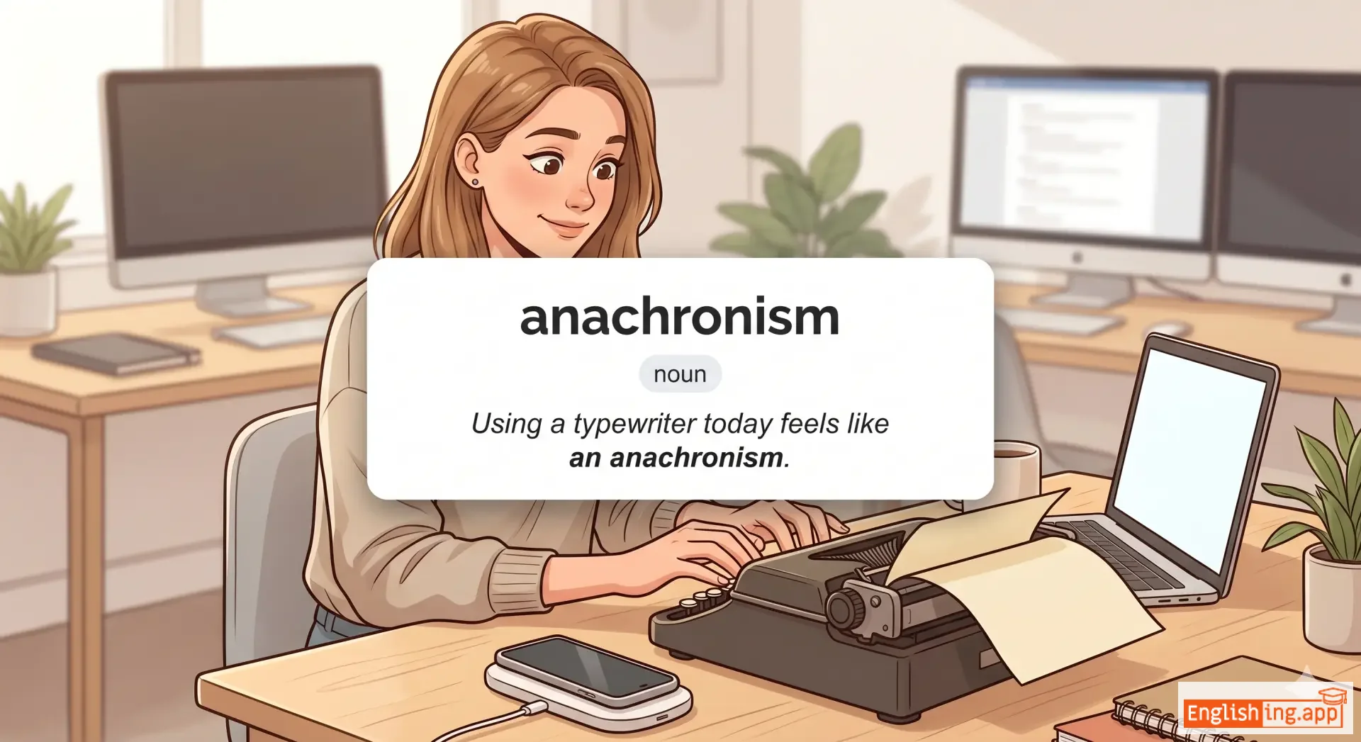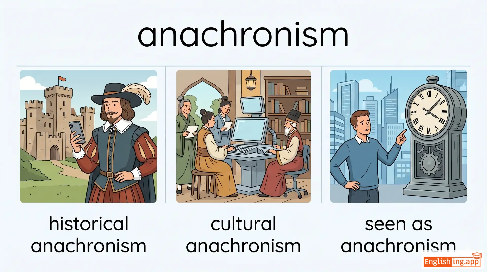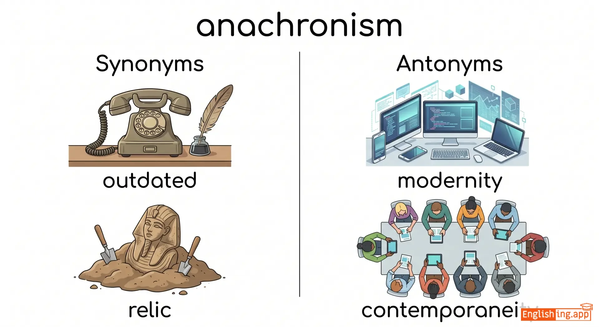 something that is out of its proper time period, especially something old-fashioned in a modern context