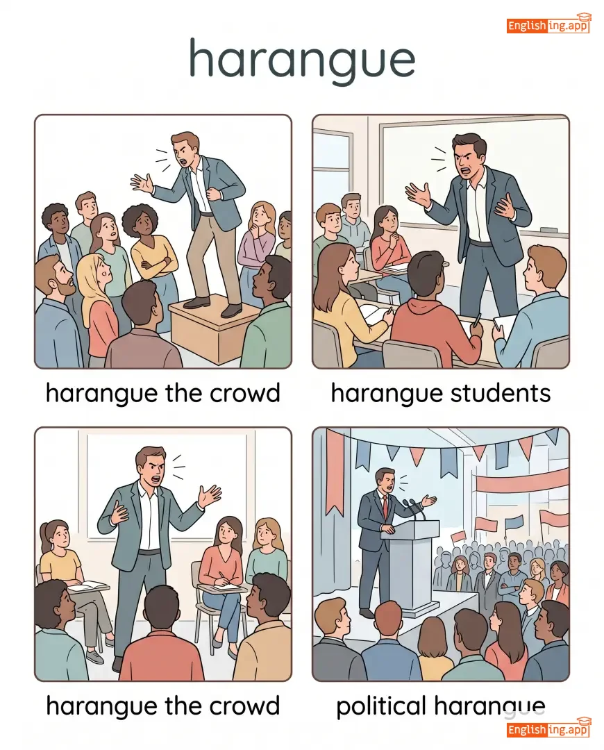 harangue the crowd, harangue students, political harangue
