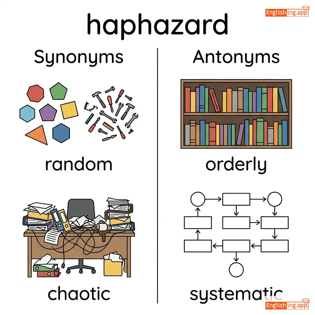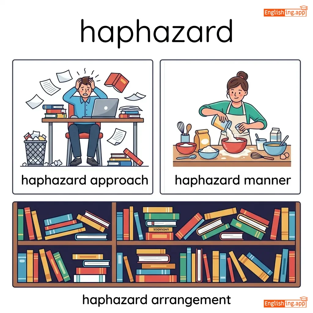 haphazard approach, haphazard manner, haphazard arrangement