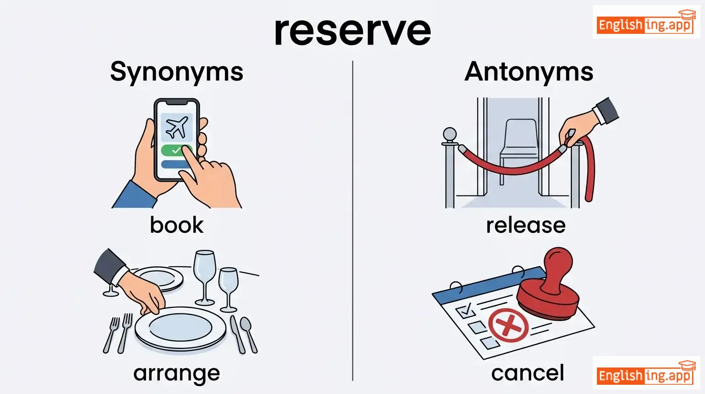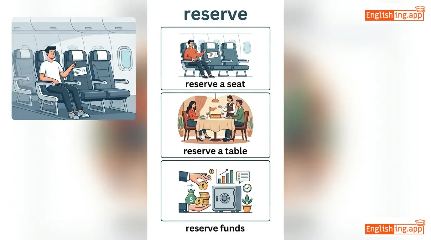 reserve a seat, reserve a table, reserve funds, reserve rights