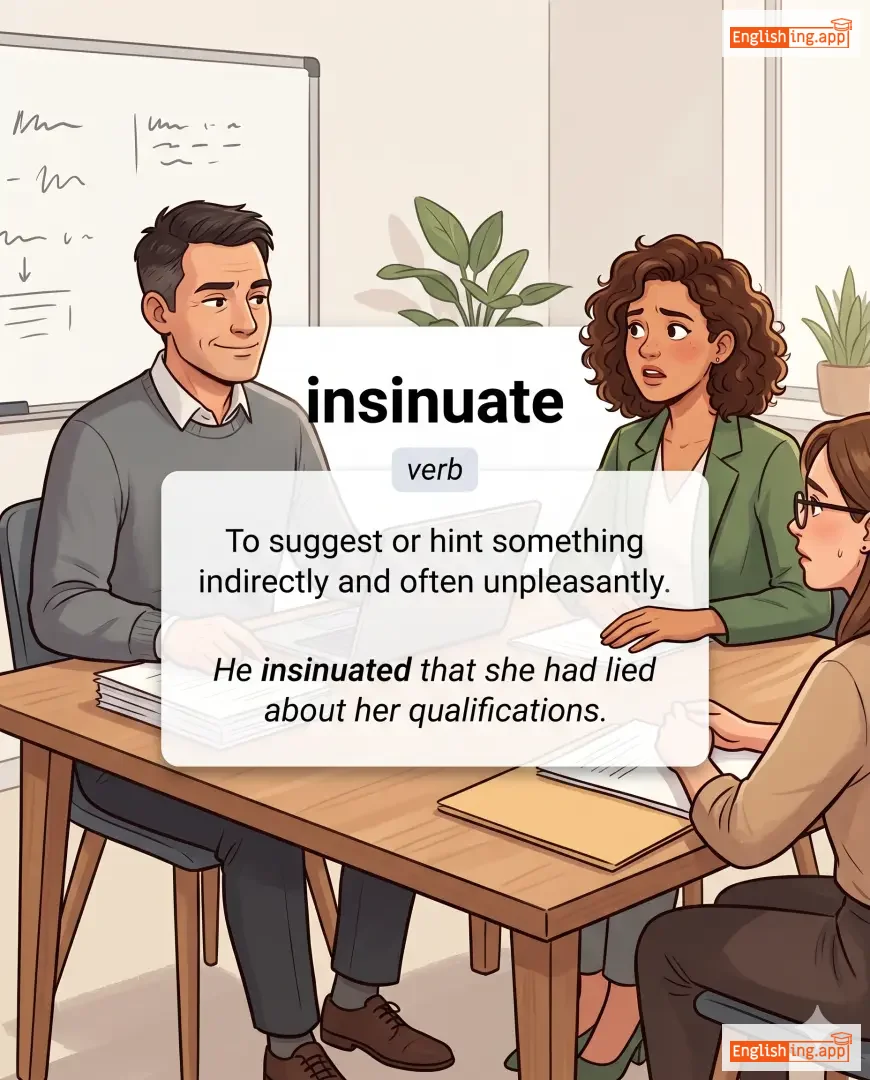 He insinuated that she had lied about her qualifications. |