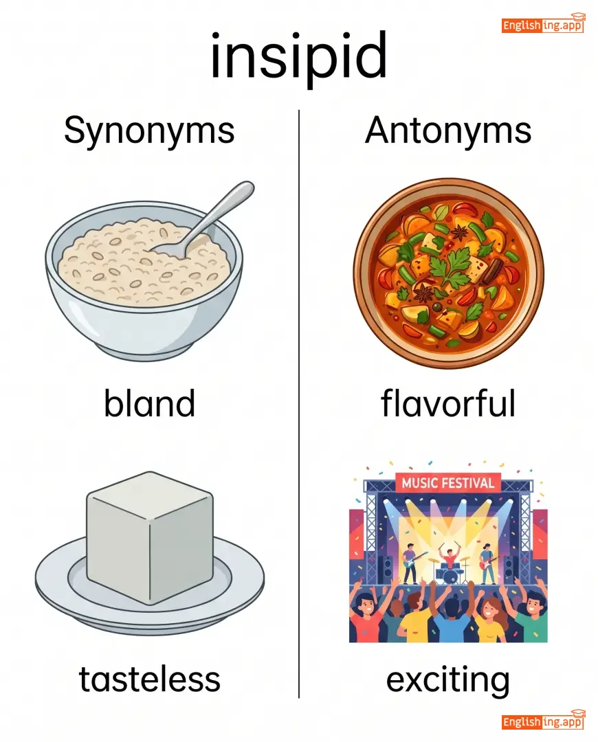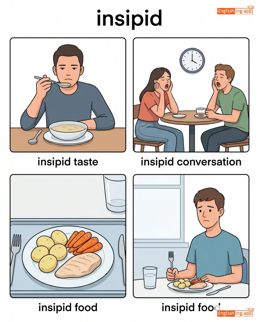 insipid taste, insipid conversation, insipid food, insipid performance